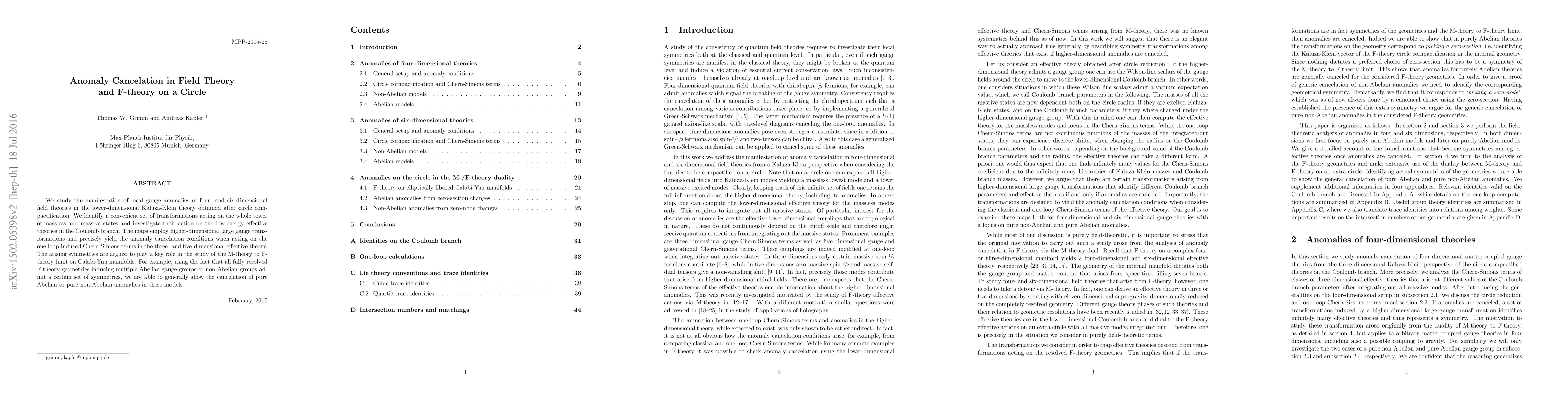 Researchers investigate how anomalies in high-dimensional field theories cancel out when compactified on a circle, with implications for understanding M-theory to F-theory limits on Calabi-Yau manifolds.