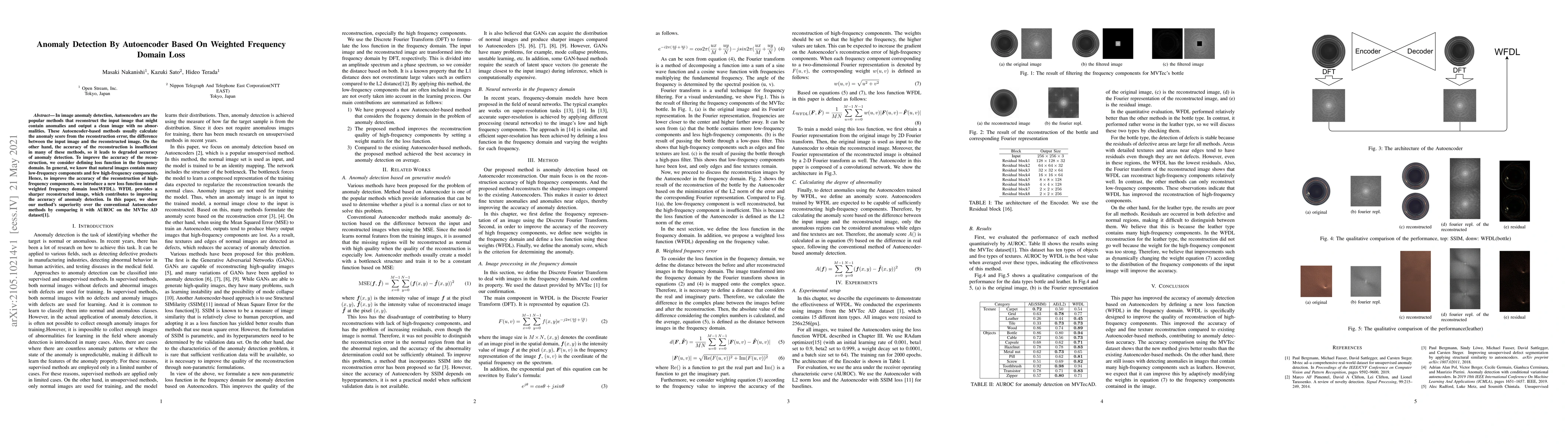 This paper proposes a weighted frequency domain loss (WFDL) for autoencoder-based image anomaly detection to improve reconstruction accuracy. The WFDL enhances the reconstruction of high-frequency components, leading to more accurate anomaly detection, as demonstrated by superior AUROC performance on the MVTec AD dataset.