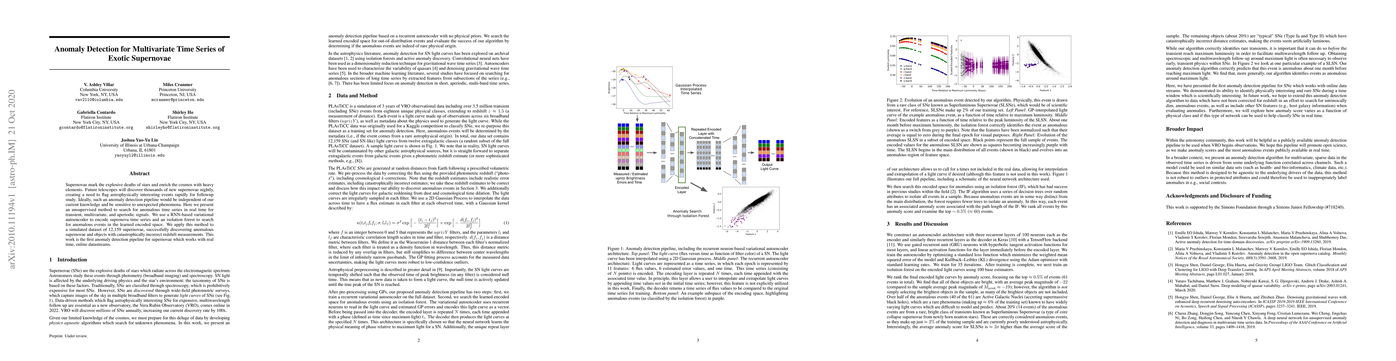 Supernovae mark the explosive deaths of stars and enrich the cosmos with heavy elements. Future telescopes will discover thousands of new supernovae nightly, creating a need to flag astrophysically interesting events rapidly for followup study. Ideally, such an anomaly detection pipeline would be independent of our current knowledge and be sensitive to unexpected phenomena. Here we present an unsupervised method to search for anomalous time series in real time for transient, multivariate, and aperiodic signals. We use a RNN-based variational autoencoder to encode supernova time series and an isolation forest to search for anomalous events in the learned encoded space. We apply this method to a simulated dataset of 12,159 supernovae, successfully discovering anomalous supernovae and objects with catastrophically incorrect redshift measurements. This work is the first anomaly detection pipeline for supernovae which works with online datastreams.