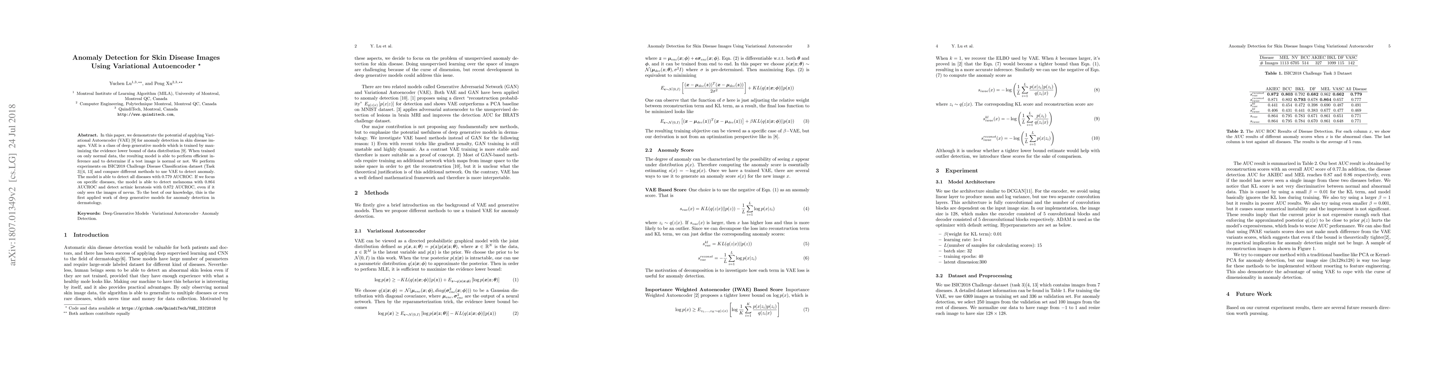 Researchers used Variational Autoencoder to detect skin diseases in images with high accuracy, outperforming existing methods in some cases, and demonstrated the potential of deep generative models for anomaly detection in dermatology.