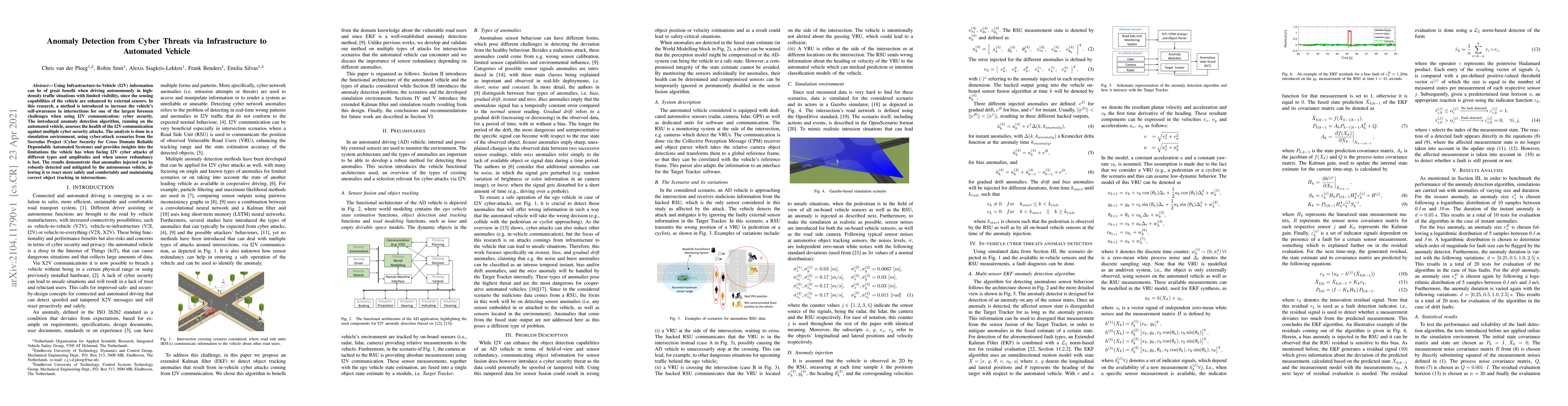 Using Infrastructure-to-Vehicle (I2V) information can be of great benefit when driving autonomously in high-density traffic situations with limited visibility, since the sensing capabilities of the vehicle are enhanced by external sensors. In this research, a method is introduced to increase the vehicle's self-awareness in intersections for one of the largest foreseen challenges when using I2V communication: cyber security. The introduced anomaly detection algorithm, running on the automated vehicle, assesses the health of the I2V communication against multiple cyber security attacks. The analysis is done in a simulation environment, using cyber-attack scenarios from the Secredas Project (Cyber Security for Cross Domain Reliable Dependable Automated Systems) and provides insights into the limitations the vehicle has when facing I2V cyber attacks of different types and amplitudes and when sensor redundancy is lost. The results demonstrate that anomalies injected can be robustly detected and mitigated by the autonomous vehicle, allowing it to react more safely and comfortably and maintaining correct object tracking in intersections.