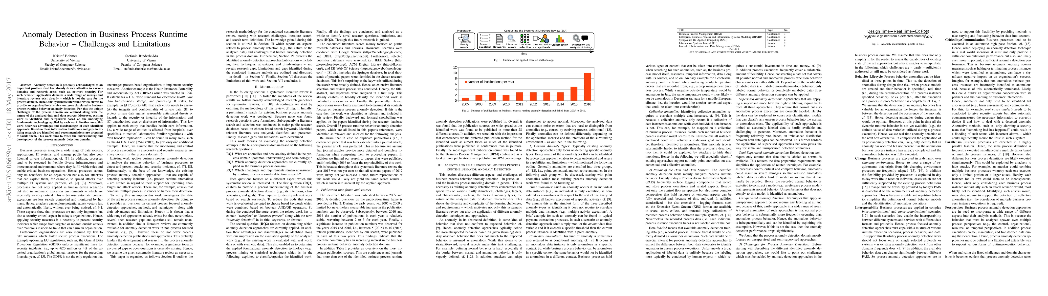 This paper systematically reviews research on anomaly detection in business process runtime behavior, highlighting unique challenges and data sources. It categorizes existing approaches, identifies their advantages and disadvantages, and proposes recommendations to address identified research gaps and limitations.