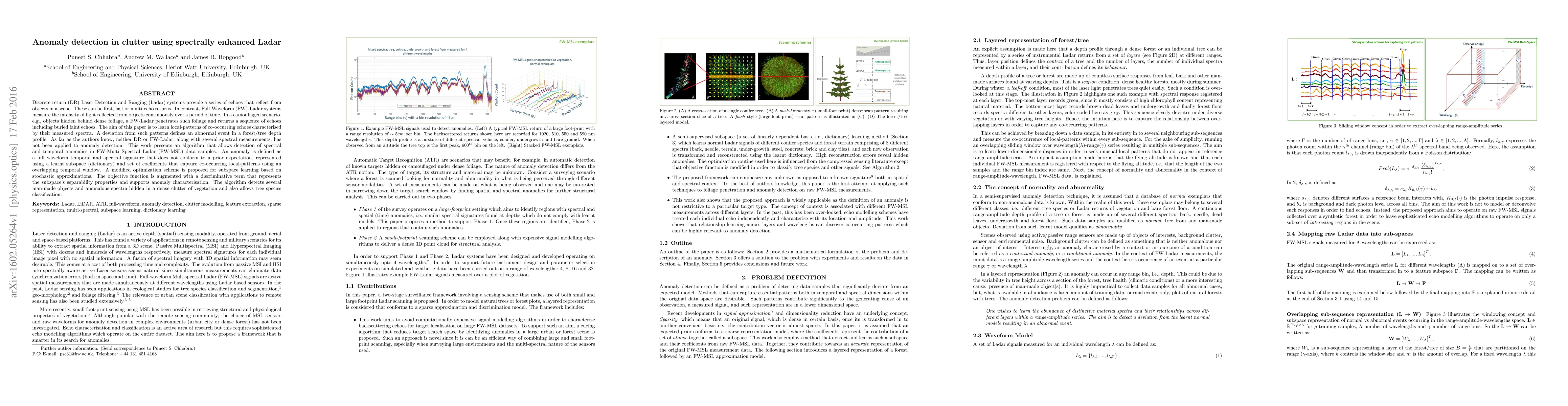 Researchers develop an algorithm for anomaly detection in clutter using spectrally enhanced Ladar, detecting man-made objects and anomalous spectra in dense vegetation, with potential applications in forest/tree classification.