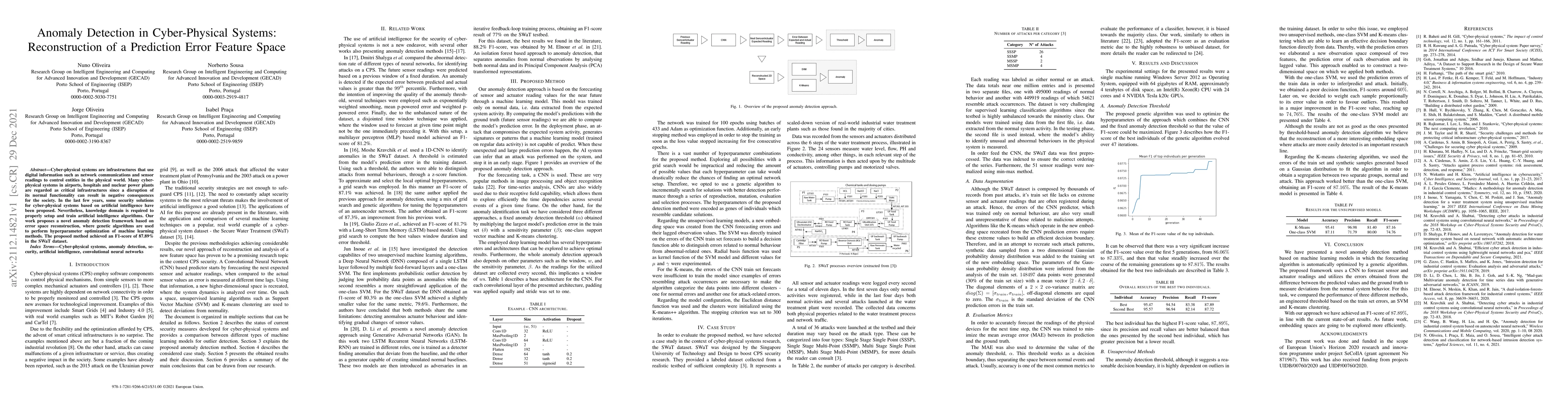 This research introduces an anomaly detection framework for cyber-physical systems using reconstruction of prediction error feature space, employing genetic algorithms for hyperparameter optimization of machine learning methods. The method achieved an F1-score of 87.89% in the SWaT dataset, indicating its effectiveness in detecting anomalies in critical infrastructures.