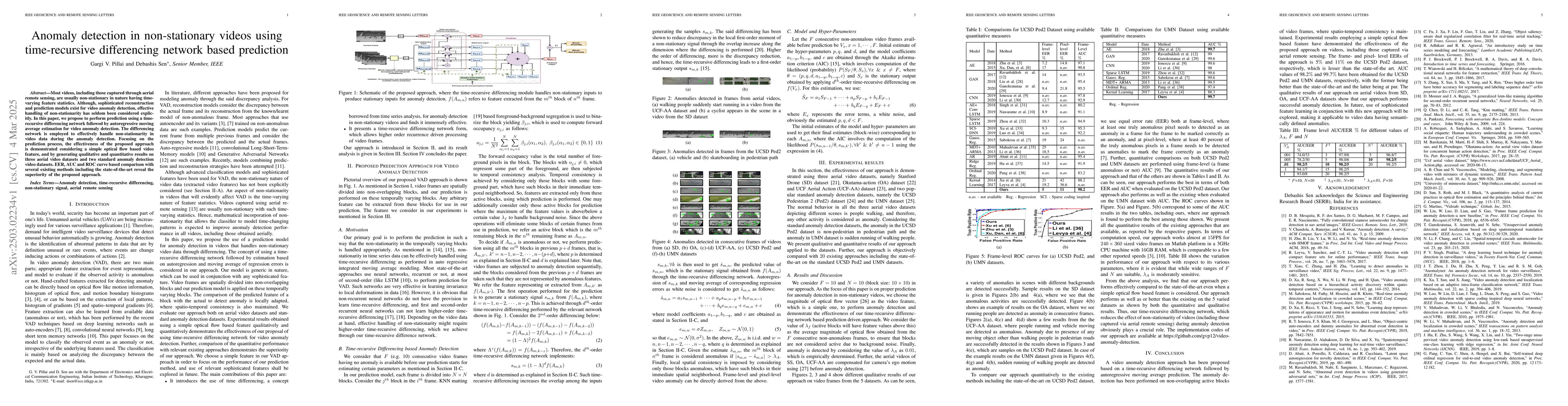 This paper proposes a time-recursive differencing network for predicting and detecting anomalies in non-stationary videos, demonstrating its effectiveness through optical flow features and comparisons with existing methods on multiple datasets. The approach outperforms state-of-the-art methods based on EER, AUC, and ROC curve metrics.