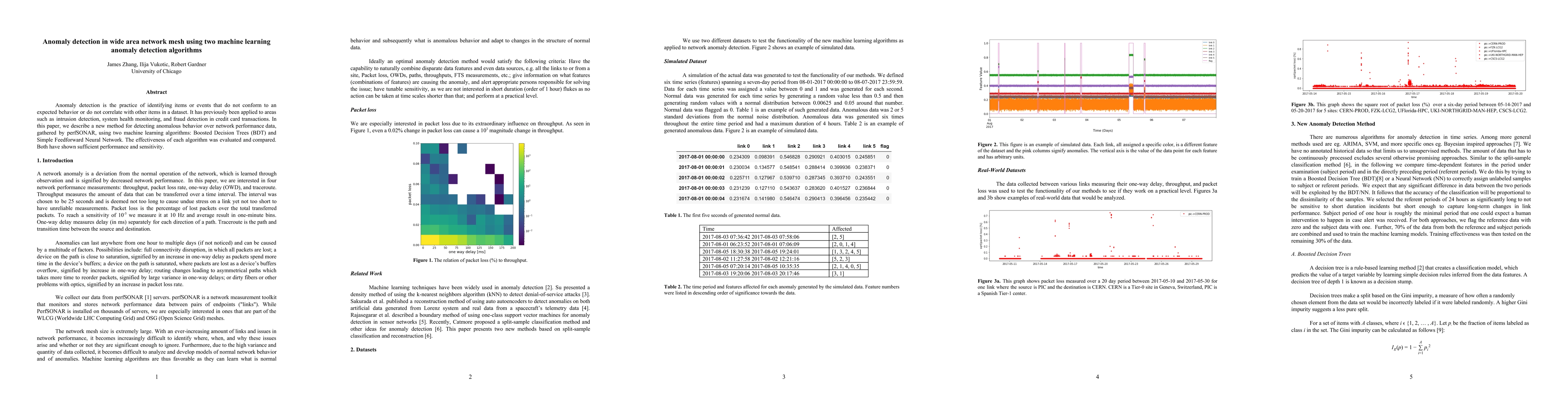 A new method for detecting anomalous behavior in network performance data using Boosted Decision Trees and Simple Feedforward Neural Network was developed and shown to have sufficient performance and sensitivity.
