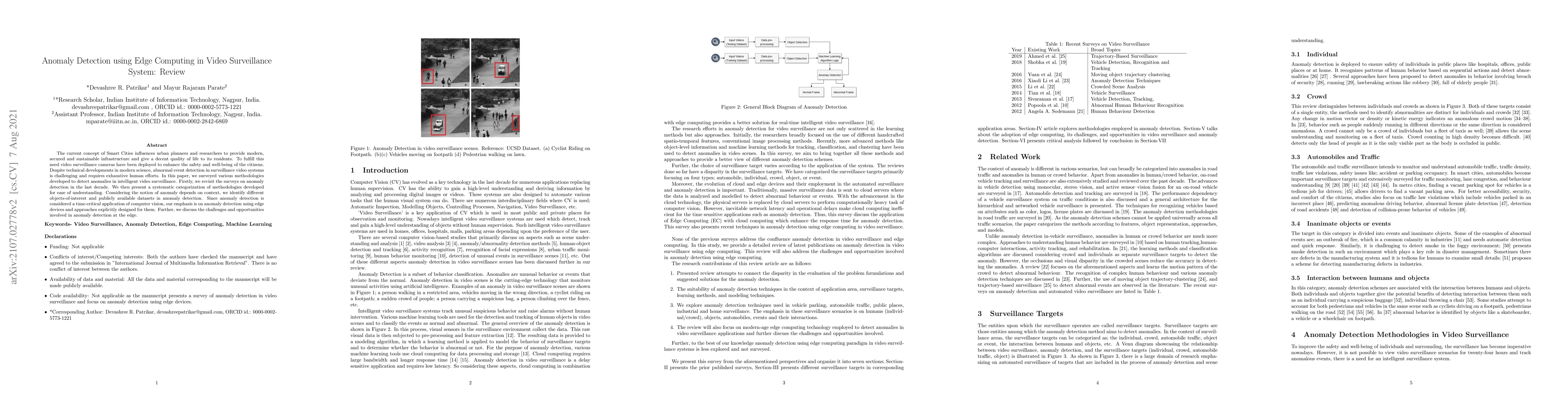 This paper reviews methodologies for detecting anomalies in intelligent video surveillance systems, focusing on the use of edge computing to enhance real-time detection. It categorizes recent approaches and highlights the challenges and opportunities of implementing these methods on edge devices.