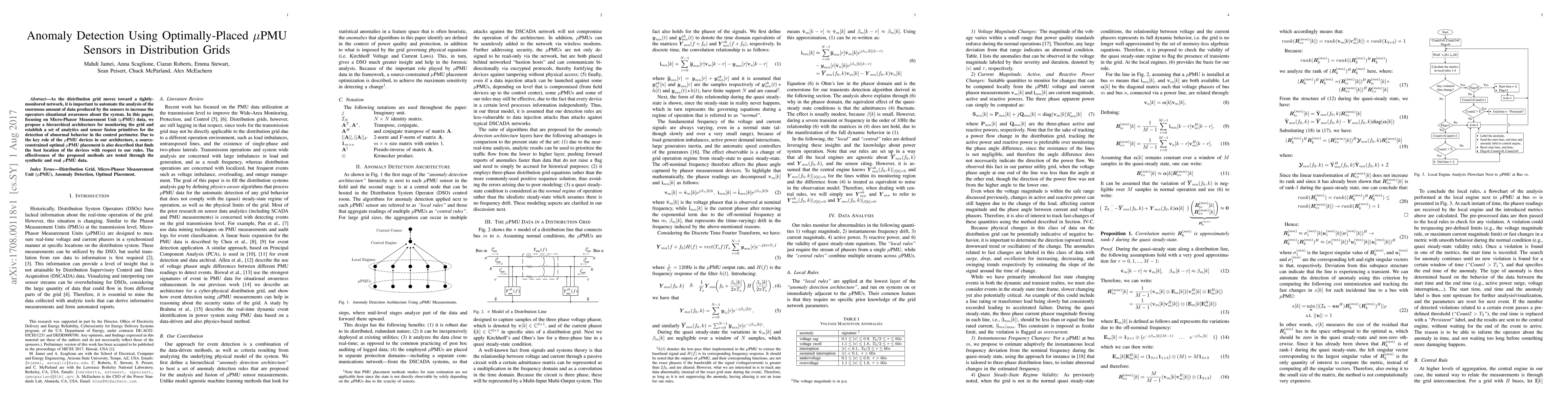 This paper proposes a hierarchical architecture for monitoring distribution grids using optimally-placed Micro-Phasor Measurement Units ($\mu$PMU) to detect abnormal behavior. The study includes analytics and sensor fusion techniques, and evaluates the methods with both synthetic and real $\mu$PMU data.