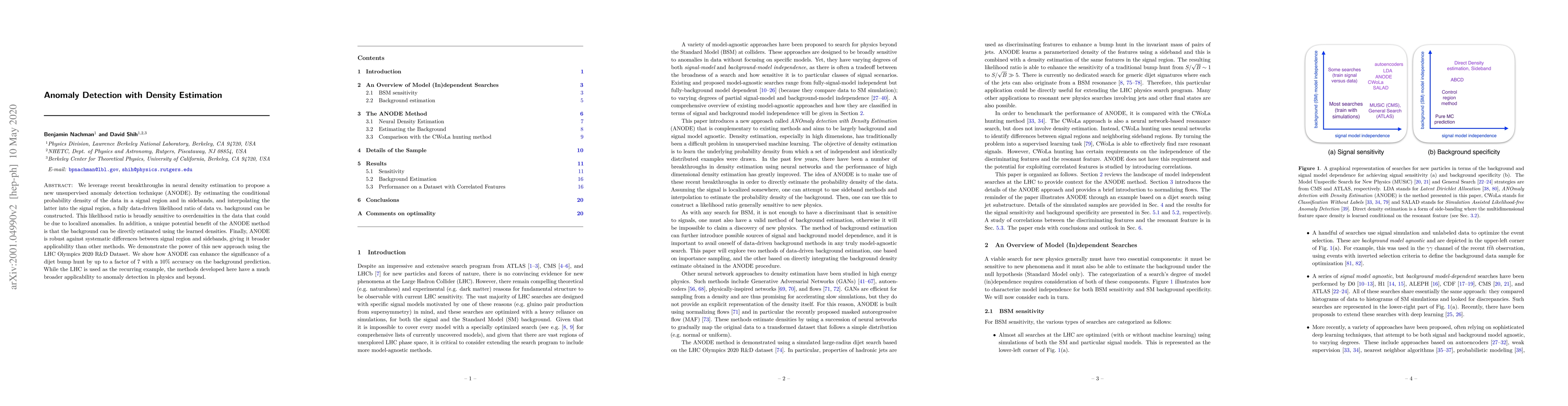 This paper introduces ANODE, an unsupervised anomaly detection technique leveraging neural density estimation to identify localized anomalies by estimating data density and interpolating sideband densities. The method enhances the significance of anomaly detection, demonstrated on the LHC Olympics 2020 dataset, and is robust against systematic differences.