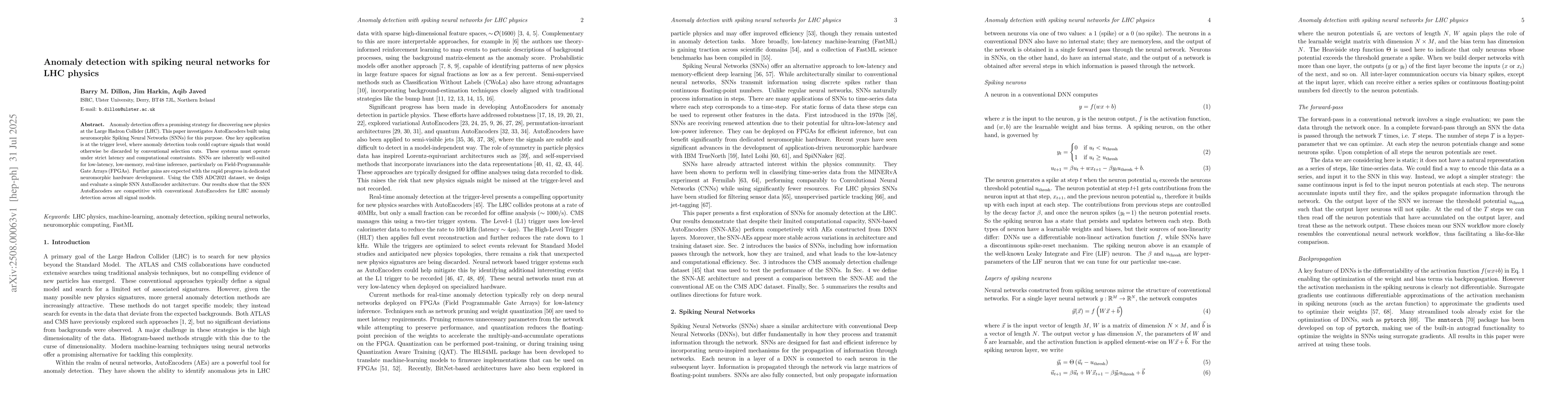 Anomaly detection offers a promising strategy for discovering new physics at the Large Hadron Collider (LHC). This paper investigates AutoEncoders built using neuromorphic Spiking Neural Networks (SNNs) for this purpose. One key application is at the trigger level, where anomaly detection tools could capture signals that would otherwise be discarded by conventional selection cuts. These systems must operate under strict latency and computational constraints. SNNs are inherently well-suited for low-latency, low-memory, real-time inference, particularly on Field-Programmable Gate Arrays (FPGAs). Further gains are expected with the rapid progress in dedicated neuromorphic hardware development. Using the CMS ADC2021 dataset, we design and evaluate a simple SNN AutoEncoder architecture. Our results show that the SNN AutoEncoders are competitive with conventional AutoEncoders for LHC anomaly detection across all signal models.