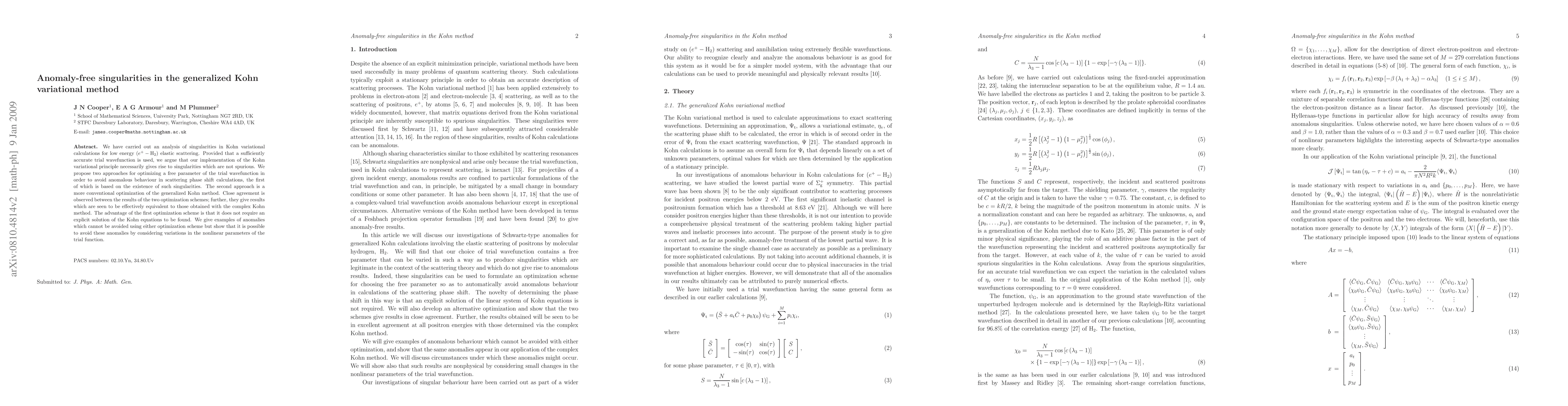 We have carried out an analysis of singularities in Kohn variational calculations for low energy e^{+}-H_{2} elastic scattering. Provided that a sufficiently accurate trial wavefunction is used, we argue that our implementation of the Kohn variational principle necessarily gives rise to singularities which are not spurious. We propose two approaches for optimizing a free parameter of the trial wavefunction in order to avoid anomalous behaviour in scattering phase shift calculations, the first of which is based on the existence of such singularities. The second approach is a more conventional optimization of the generalized Kohn method. Close agreement is observed between the results of the two optimization schemes; further, they give results which are seen to be effectively equivalent to those obtained with the complex Kohn method. The advantage of the first optimization scheme is that it does not require an explicit solution of the Kohn equations to be found. We give examples of anomalies which cannot be avoided using either optimization scheme but show that it is possible to avoid these anomalies by considering variations in the nonlinear parameters of the trial function.