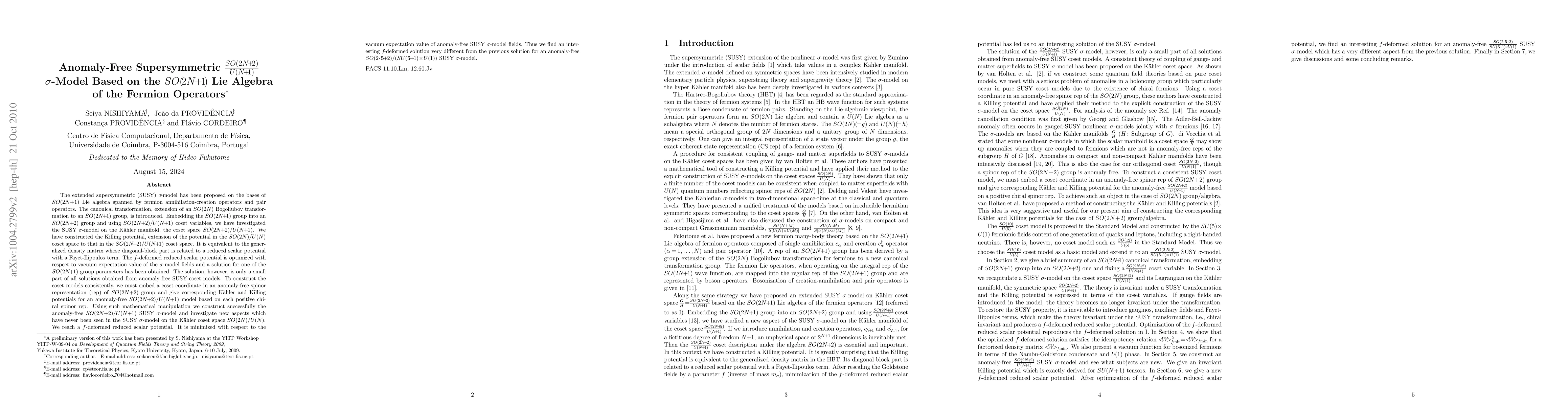 This paper constructs an anomaly-free supersymmetric sigma-model based on the SO(2N+2)/U(N+1) coset space, embedding the SO(2N+1) group into SO(2N+2) and utilizing new mathematical techniques. It finds an optimized f-deformed reduced scalar potential and presents a novel solution distinct from previous models.