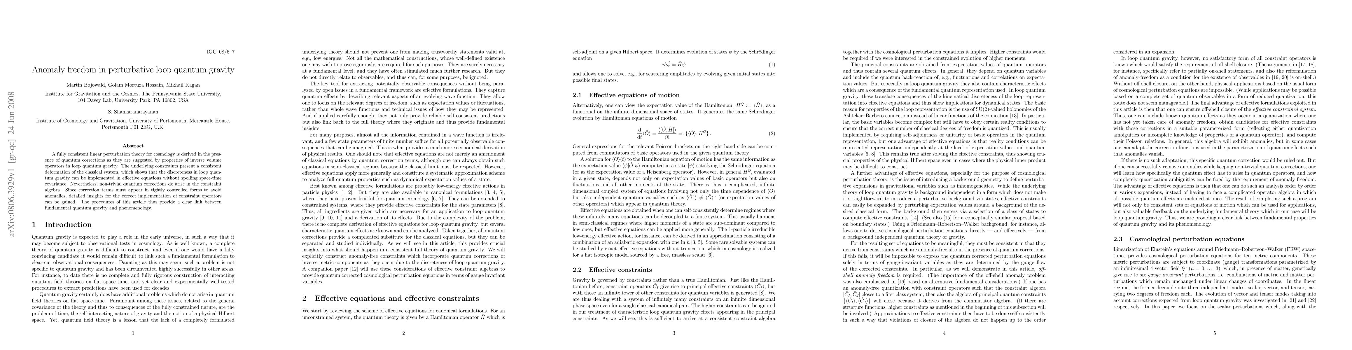This paper develops a consistent linear perturbation theory for cosmology incorporating quantum corrections from loop quantum gravity, demonstrating that discreteness can be implemented without violating space-time covariance. It highlights the necessity of carefully controlled quantum corrections to avoid anomalies, thereby linking fundamental quantum gravity to phenomenological implications.