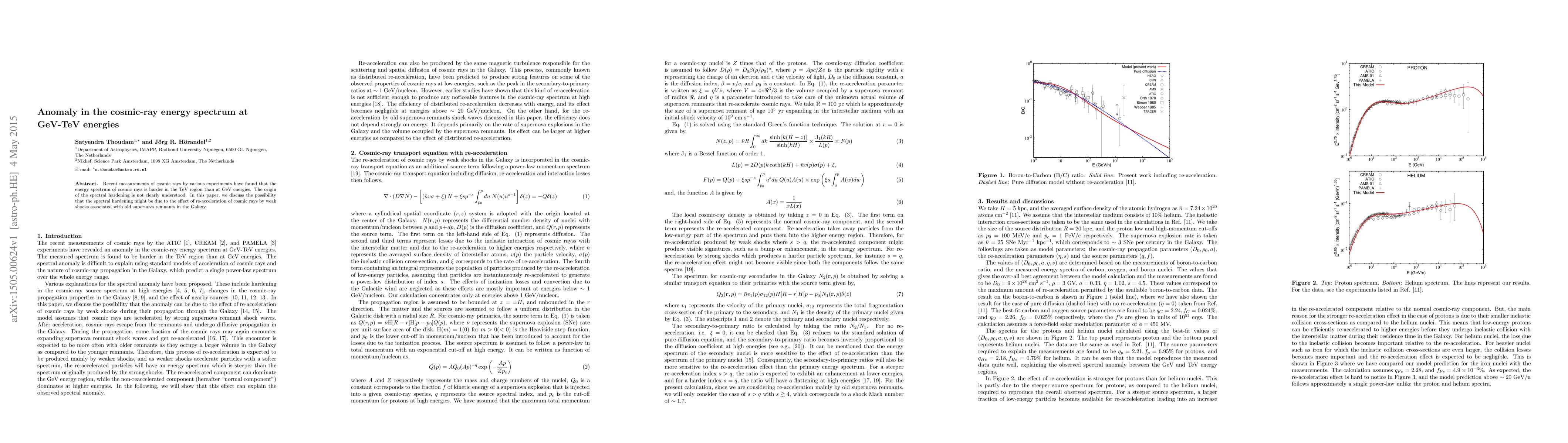 Summary: This paper investigates the observed spectral hardening of cosmic rays in the TeV region compared to GeV energies, suggesting that weak shocks from old supernova remnants may be responsible for re-accelerating cosmic rays, though the exact cause remains unclear.
