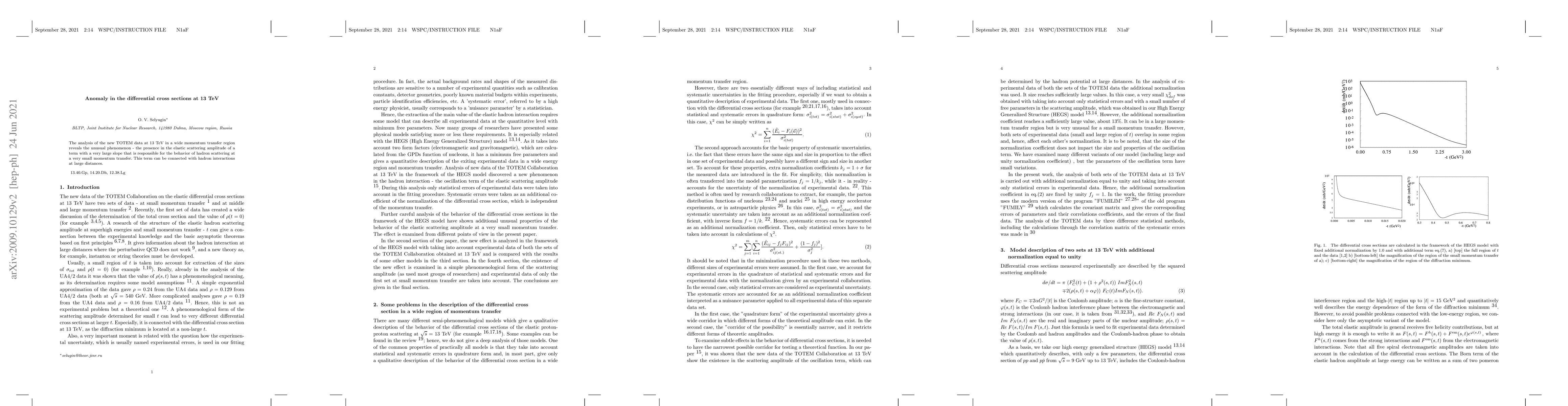 The analysis of the new TOTEM data at 13 TeV in a wide momentum transfer region reveals the unusual phenomenon - the presence in the elastic scattering amplitude of a term with a very large slope that is responsible for the behaviour of hadron scattering at a very small momentum transfer. This term can be connected with hadron interactions at large distances.