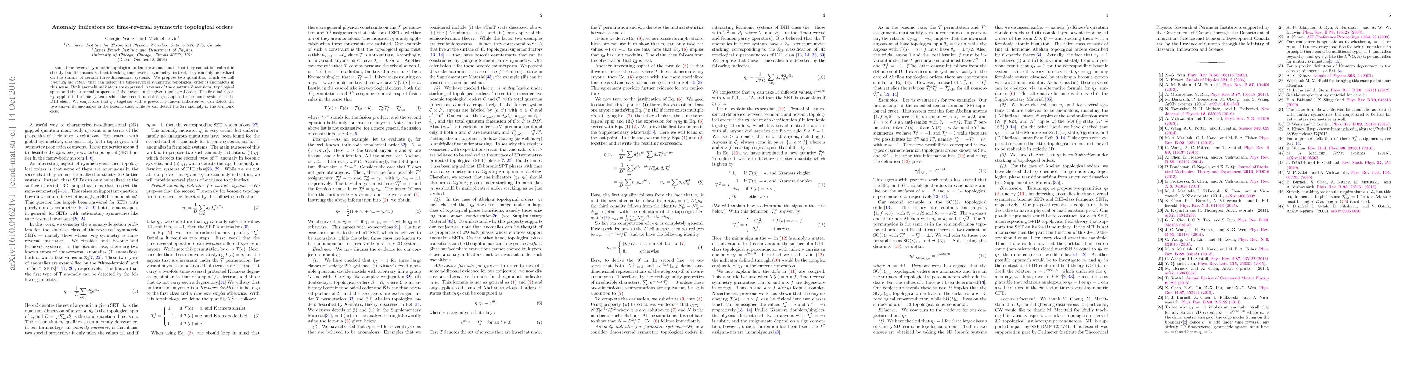 Some time-reversal symmetric topological orders are anomalous in that they cannot be realized in strictly two-dimensions without breaking time reversal symmetry; instead, they can only be realized on the surface of certain three-dimensional systems. We propose two quantities, which we call {\it anomaly indicators}, that can detect if a time-reversal symmetric topological order is anomalous in this sense. Both anomaly indicators are expressed in terms of the quantum dimensions, topological spins, and time-reversal properties of the anyons in the given topological order. The first indicator, $\eta_2$, applies to bosonic systems while the second indicator, $\eta_f$, applies to fermionic systems in the DIII class. We conjecture that $\eta_2$, together with a previously known indicator $\eta_1$, can detect the two known $\mathbb Z_2$ anomalies in the bosonic case, while $\eta_f$ can detect the $\mathbb Z_{16}$ anomaly in the fermionic case.