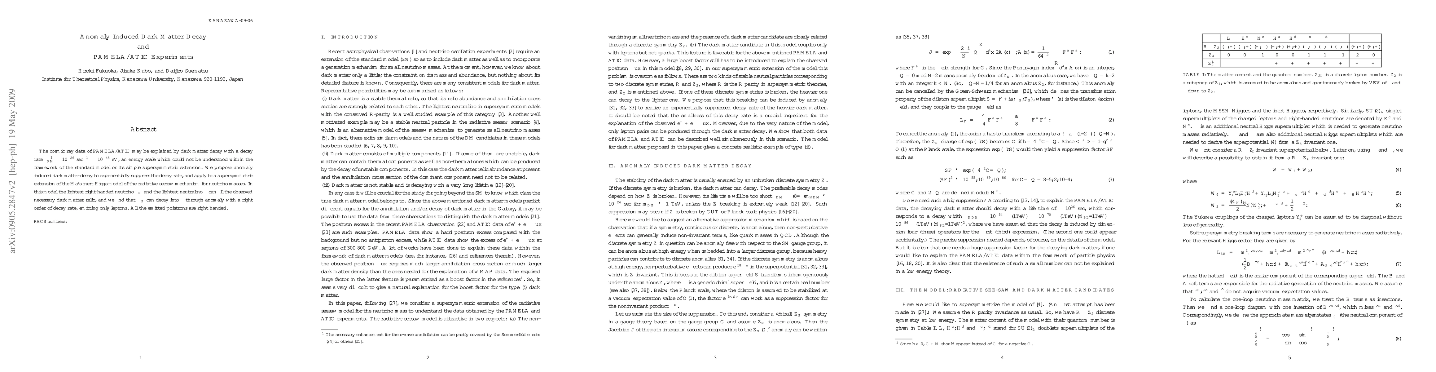 This paper proposes anomaly induced dark matter decay to explain PAMELA/ATIC cosmic ray data, suggesting a decay rate consistent with observed anomalies. The model utilizes a supersymmetric extension of Ma's inert Higgs model, where the lightest right-handed neutrino decays into the lightest neutralino, emitting only right-handed positrons.
