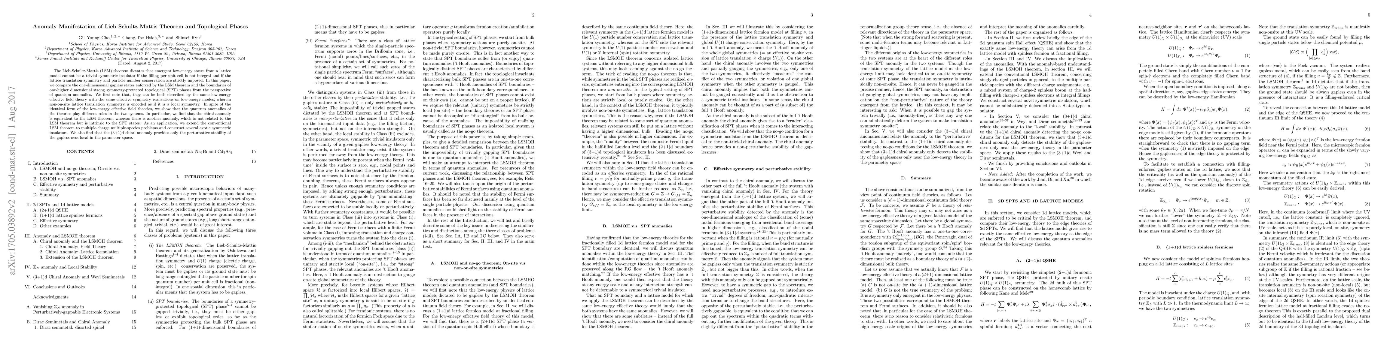 This paper explores the connection between the Lieb-Schultz-Mattis theorem and topological phases, showing that both can be described by the same low-energy effective field theory. It identifies distinct quantum anomalies, with the chiral anomaly corresponding to the LSM theorem and another anomaly intrinsic to symmetry-protected topological phases. The study extends the LSM theorem to multiple charges and species, revealing the perturbative stability of gapless states.