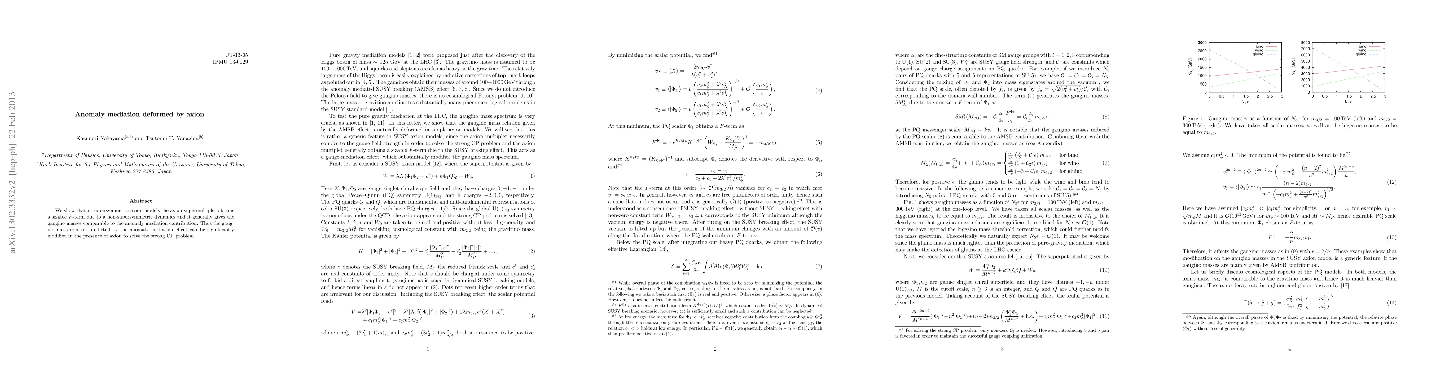 The research utilizes supersymmetric axion models to demonstrate that a non-supersymmetric dynamics can give the axion supermultiplet a sizable F-term, modifying the gaugino mass relations predicted by anomaly mediation.
