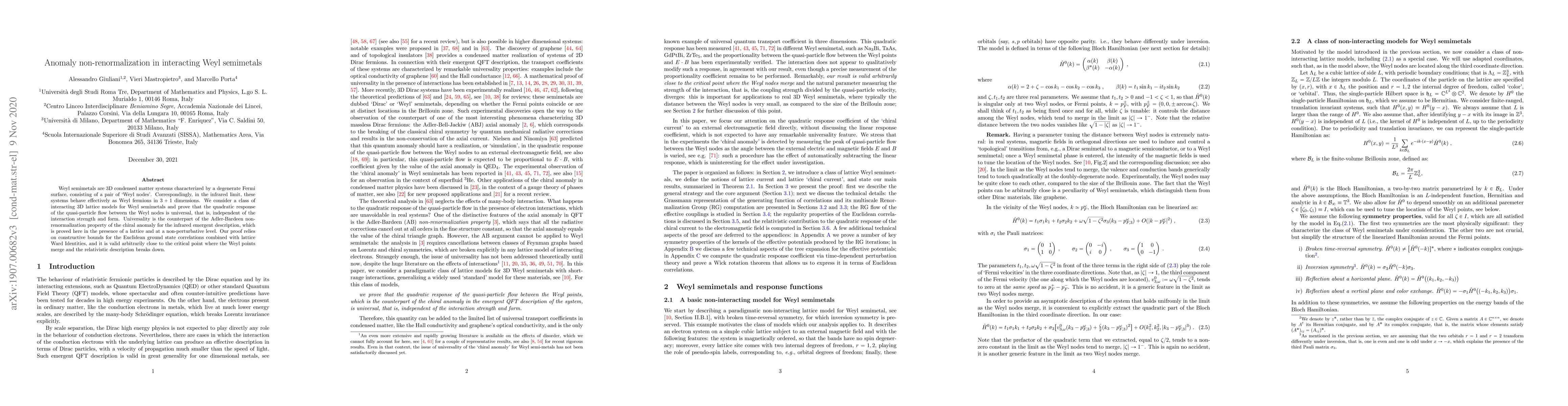 This paper proves that in interacting 3D Weyl semimetal lattice models, the quadratic response between Weyl nodes is universally independent of interaction details, mirroring the Adler-Bardeen non-renormalization theorem for chiral anomalies. The proof leverages constructive bounds and lattice Ward Identities, valid near the critical point.