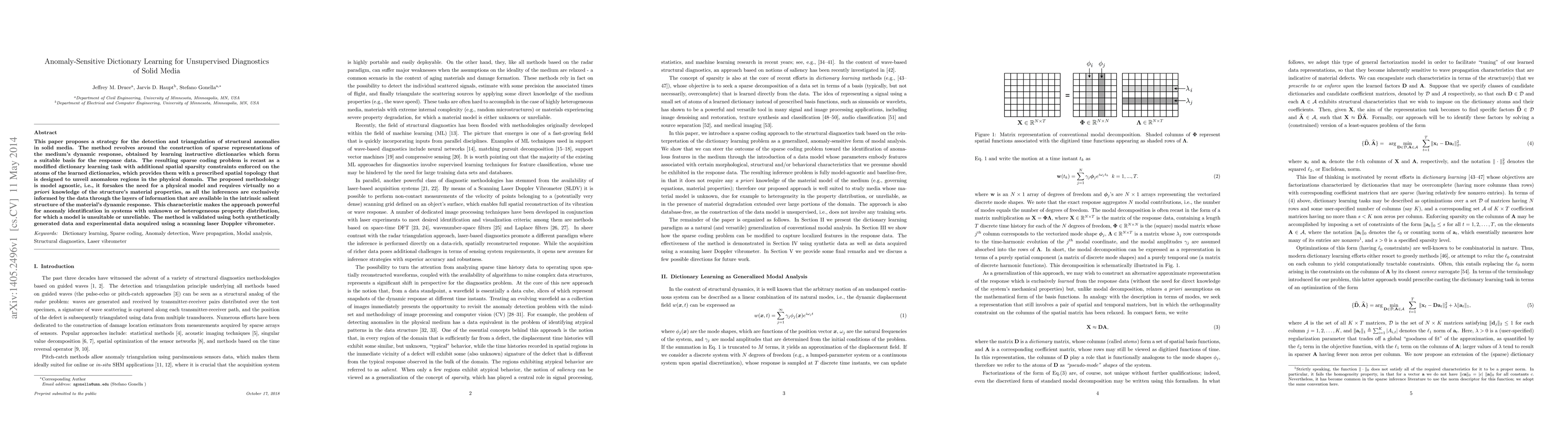 Researchers propose a method to detect structural anomalies in solid media using sparse representations and dictionary learning, which requires no prior knowledge of material properties.