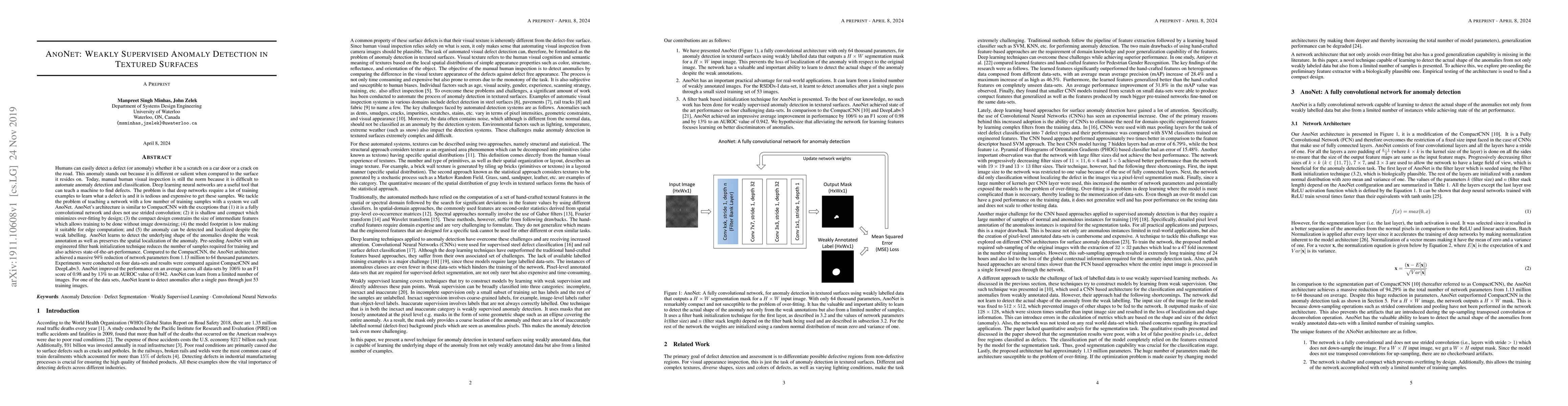 Researchers developed AnoNet, a compact neural network that detects anomalies in textured surfaces with minimal training data, achieving state-of-the-art performance on multiple datasets.