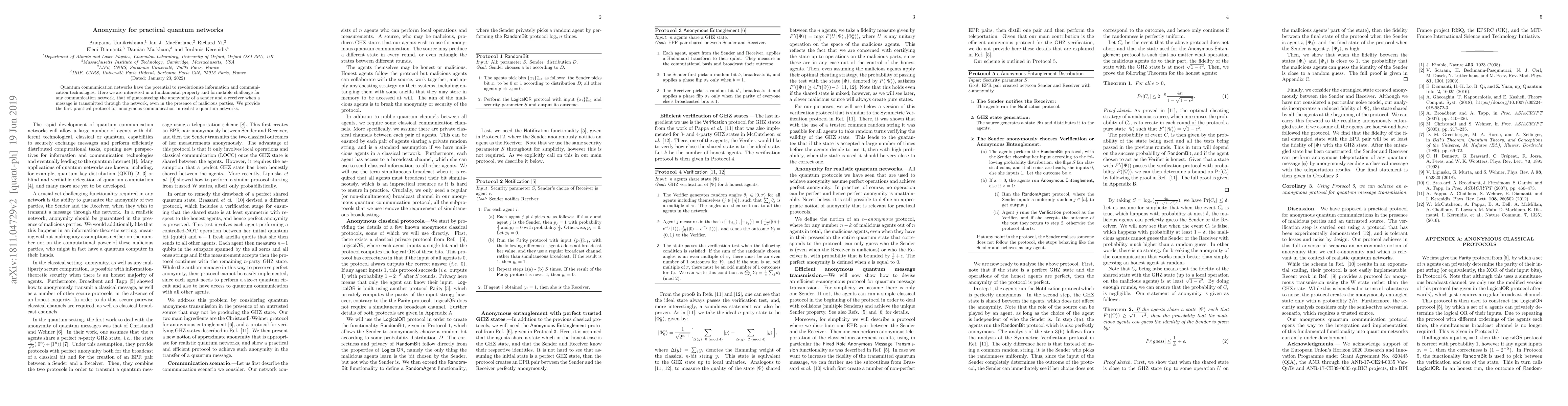 This paper presents the first practical protocol for ensuring anonymous communication in quantum networks, addressing the critical challenge of maintaining sender and receiver anonymity amidst potential malicious interference. The proposed protocol aims to secure quantum communication in real-world applications.