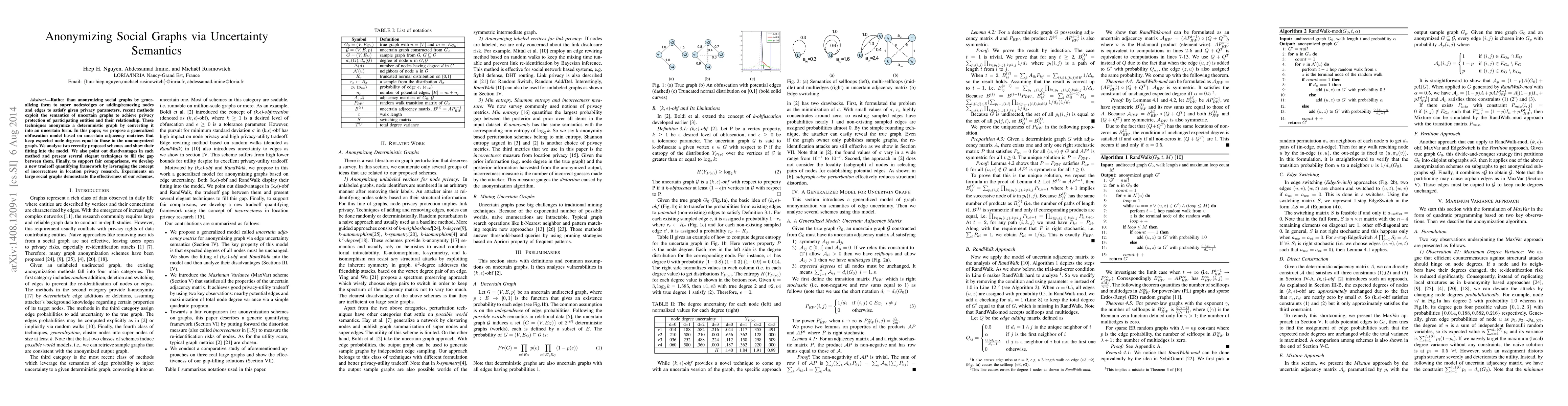 This paper proposes a generalized obfuscation model for anonymizing social graphs using uncertain adjacency matrices to maintain expected node degrees. It analyzes and compares existing methods, identifies their drawbacks, and introduces new techniques to improve privacy protection while quantifying the tradeoff between privacy and utility.