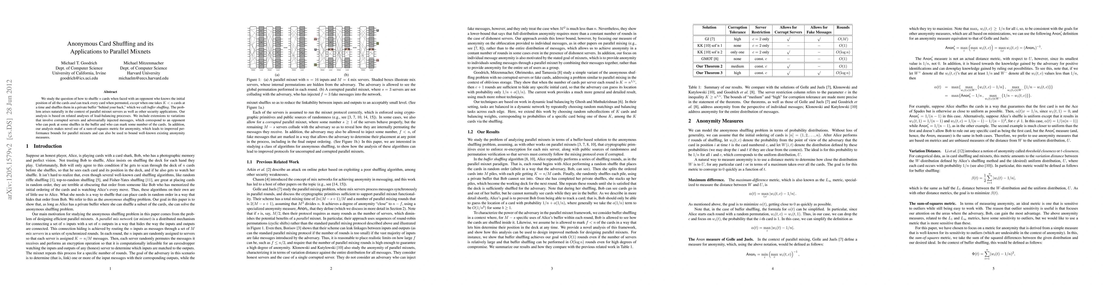 Researchers study how to shuffle cards securely when an opponent knows their initial position and can track them. They find improved performance bounds for parallel mixnets using a new sum-of-squares metric for anonymity.