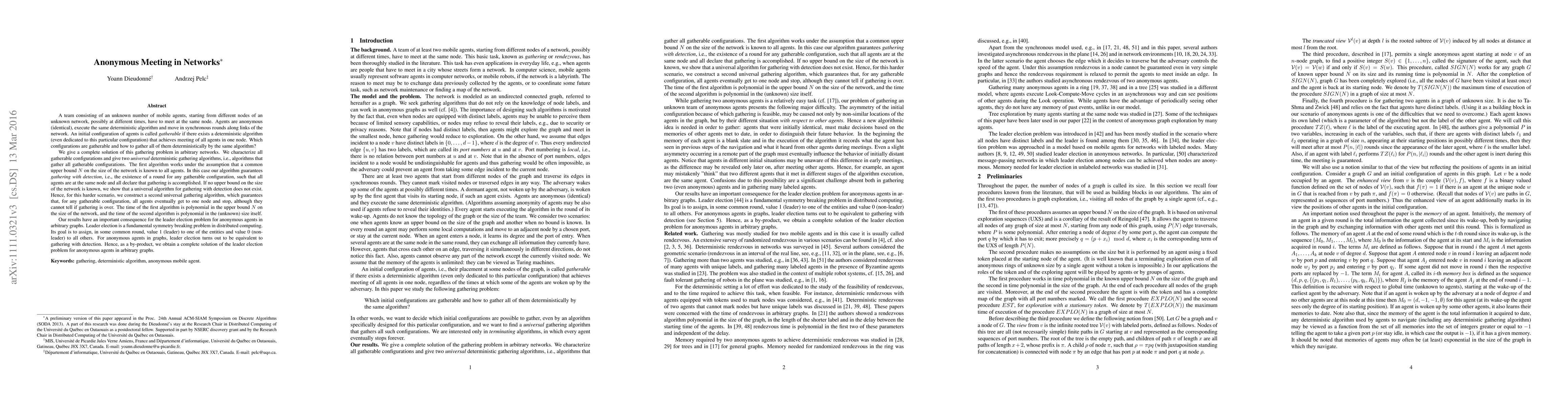 This paper presents solutions for gathering anonymous mobile agents in networks, providing two universal deterministic algorithms. The first works when the network size is known, ensuring gathering with detection. The second handles unknown network sizes, ensuring eventual gathering without detection. The study also resolves the leader election problem for anonymous agents in arbitrary graphs.