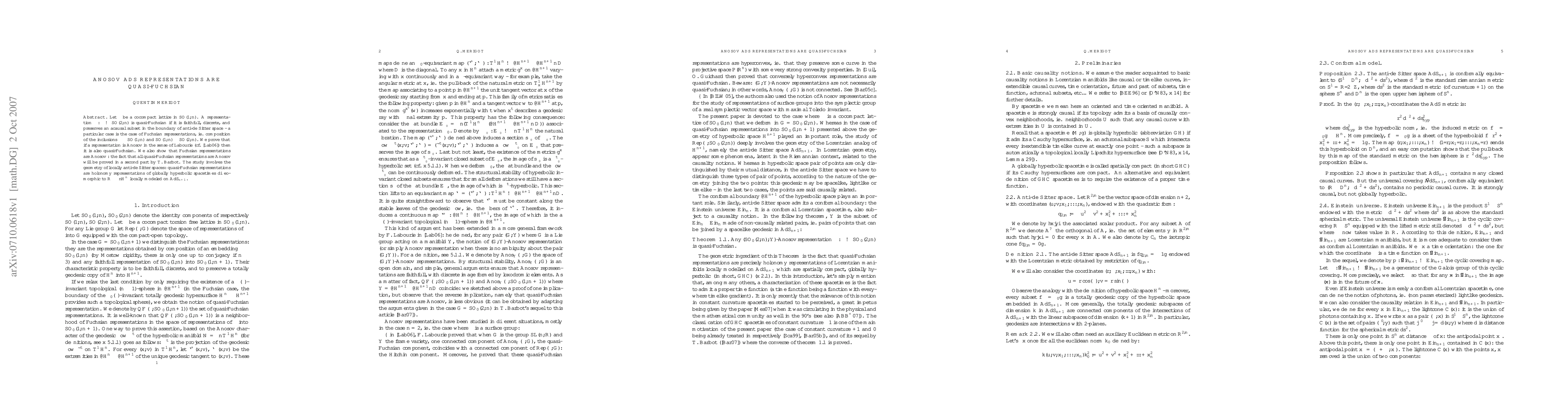 This paper proves that Anosov representations in the context of anti-de Sitter (AdS) spaces are quasi-Fuchsian, establishing a connection between Fuchsian and quasi-Fuchsian representations. The study leverages the geometry of locally AdS spaces to show that quasi-Fuchsian representations are holonomy representations of globally hyperbolic spacetimes.