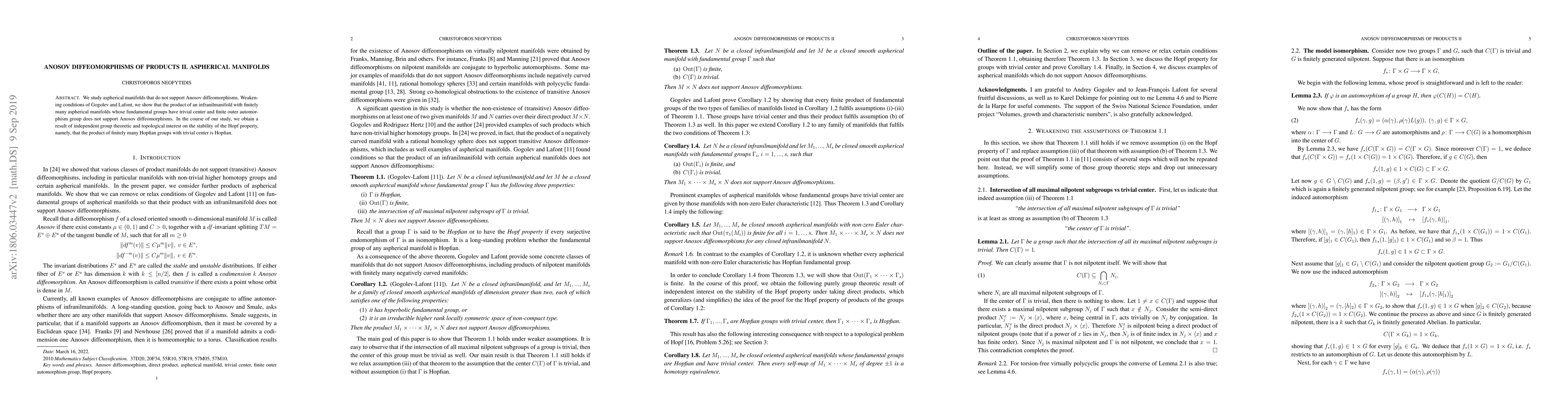We study aspherical manifolds that do not support Anosov diffeomorphisms. Weakening conditions of Gogolev and Lafont, we show that the product of an infranilmanifold with finitely many aspherical manifolds whose fundamental groups have trivial center and finite outer automorphism group does not support Anosov diffeomorphisms. In the course of our study, we obtain a result of independent group theoretic and topological interest on the stability of the Hopf property, namely, that the product of finitely many Hopfian groups with trivial center is Hopfian.