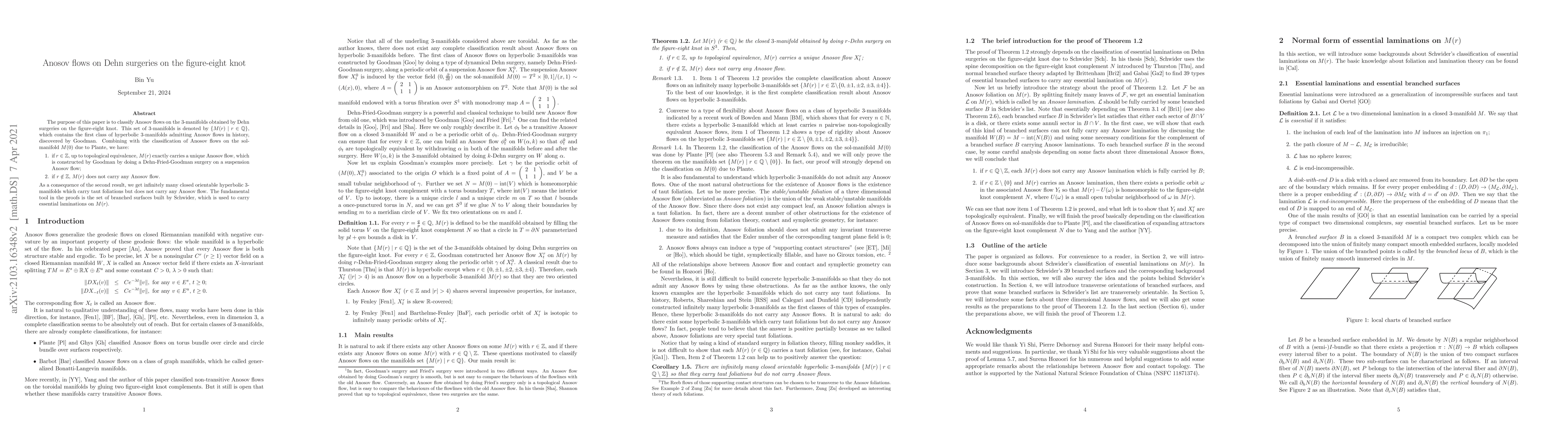 This paper classifies Anosov flows on 3-manifolds resulting from Dehn surgeries on the figure-eight knot, finding that only integer surgeries yield unique Anosov flows. Non-integer surgeries result in manifolds without any Anosov flow, leading to the discovery of infinitely many hyperbolic 3-manifolds with taut foliations but no Anosov flows.