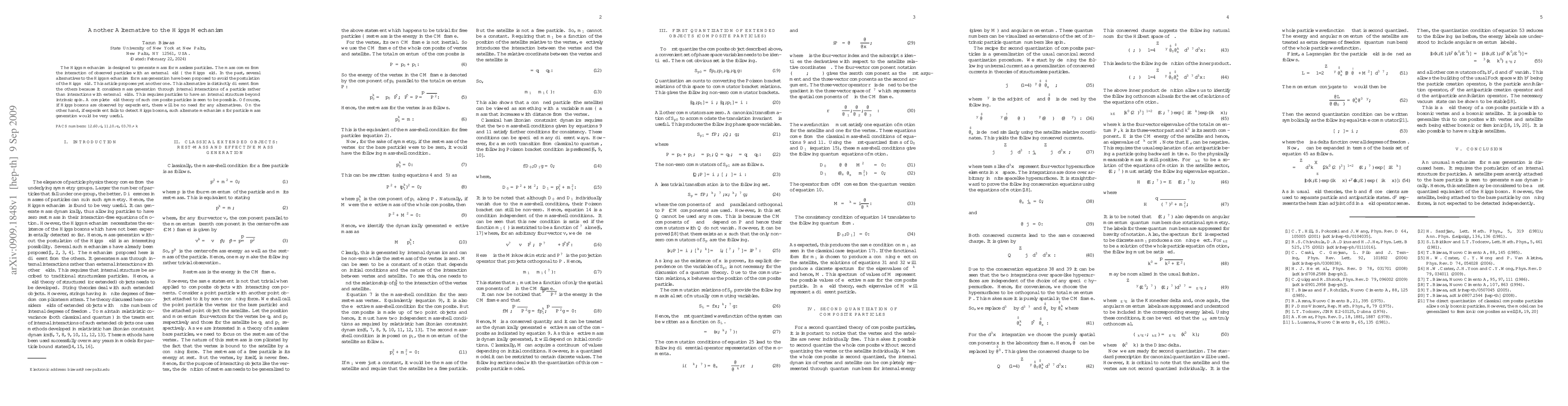 The Higgs mechanism is designed to generate mass for massless particles. The mass comes from the interaction of observed particles with an external field -- the Higgs field. In the past, several alternatives to the Higgs mechanism for mass generation have been proposed to avoid the postulation of the Higgs field. This article proposes yet another one. This alternative is distinctly different from the others because it considers mass generation through internal interactions of a particle rather than interactions with external fields. This requires particles to have an internal structure beyond intrinsic spin. A complete field theory of such composite particles is seen to be possible. Of course, if Higgs bosons are observed by experiment, there will be no need for any alternatives. On the other hand, if experiment fails to detect Higgs bosons, such alternate mechanisms for particle mass generation would be very useful.