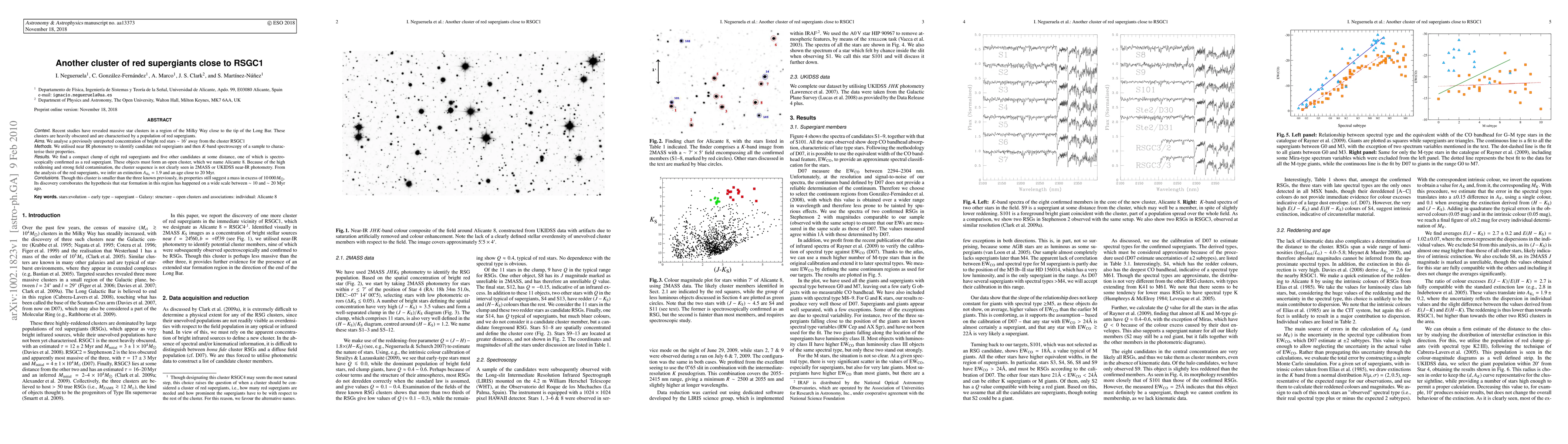 Recent studies have revealed massive star clusters in a region of the Milky Way close to the tip of the Long Bar. These clusters are heavily obscured and are characterised by a population of red supergiants. We analyse a previously unreported concentration of bright red stars ~16' away from the cluster RSGC1. We utilised near IR photometry to identify candidate red supergiants and then K-band spectroscopy of a sample to characterise their properties. We find a compact clump of eight red supergiants and five other candidates at some distance, one of which is spectroscopically confirmed as a red supergiant. These objects must form an open cluster, which we name Alicante 8. Because of the high reddening and strong field contamination, the cluster sequence is not clearly seen in 2MASS or UKIDSS near-IR photometry. From the analysis of the red supergiants, we infer an extinction $A_{K_{{\rm S}}}=1.9$ and an age close to 20 Myr. Though this cluster is smaller than the three known previously, its properties still suggest a mass in excess of 10 000 $M_{\sun}$. Its discovery corroborates the hypothesis that star formation in this region has happened on a wide scale between ~10 and ~20 Myr ago.