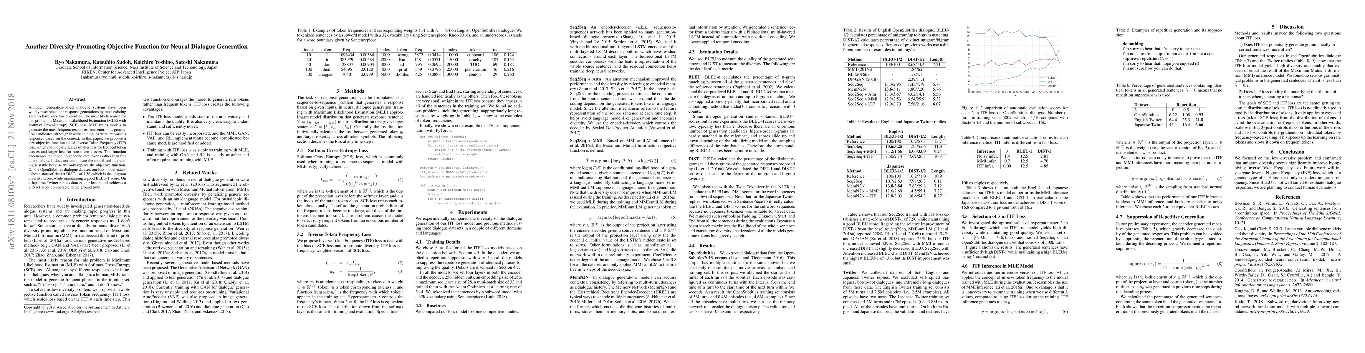 Researchers propose a new objective function called Inverse Token Frequency (ITF) loss to improve diversity in neural dialogue generation systems, achieving state-of-the-art unigram diversity scores on two datasets.
