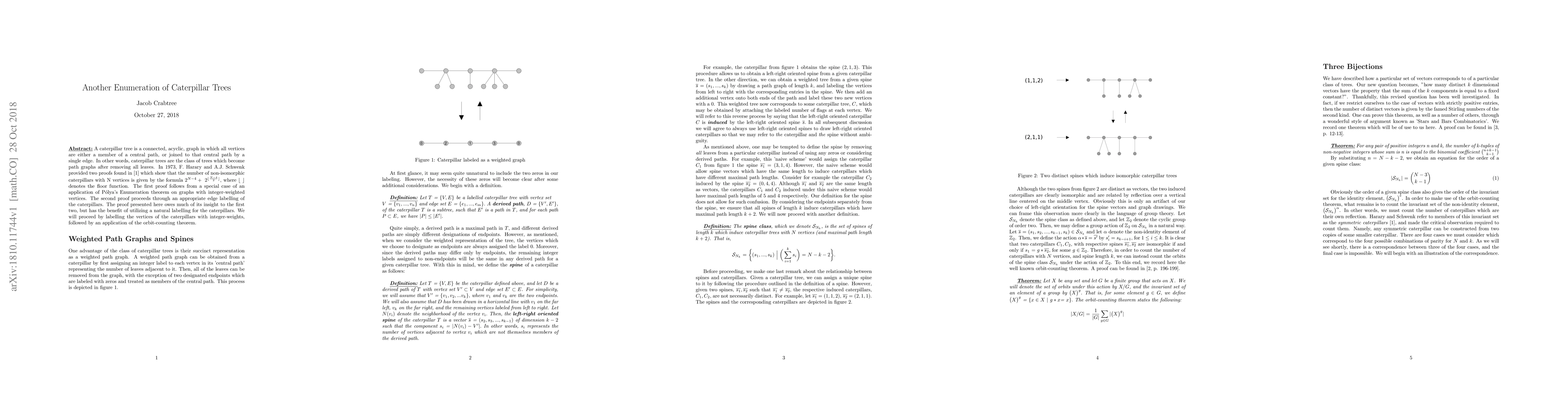 This paper re-proves a formula for counting non-isomorphic caterpillar trees with N vertices, offering a new proof that builds on earlier research by F. Harary and A.J. Schwenk.