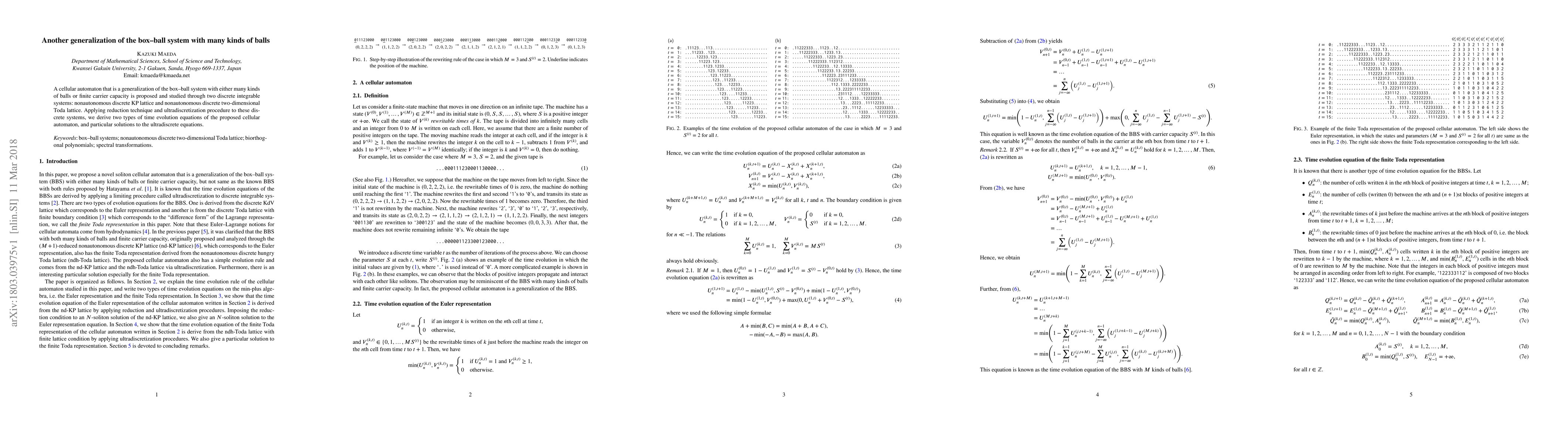 This research introduces a generalized cellular automaton of the box-ball system, applicable for multiple ball kinds or finite carrier capacity. It derives time evolution equations using discrete KP and Toda lattice reductions, providing particular solutions to ultradiscrete equations.