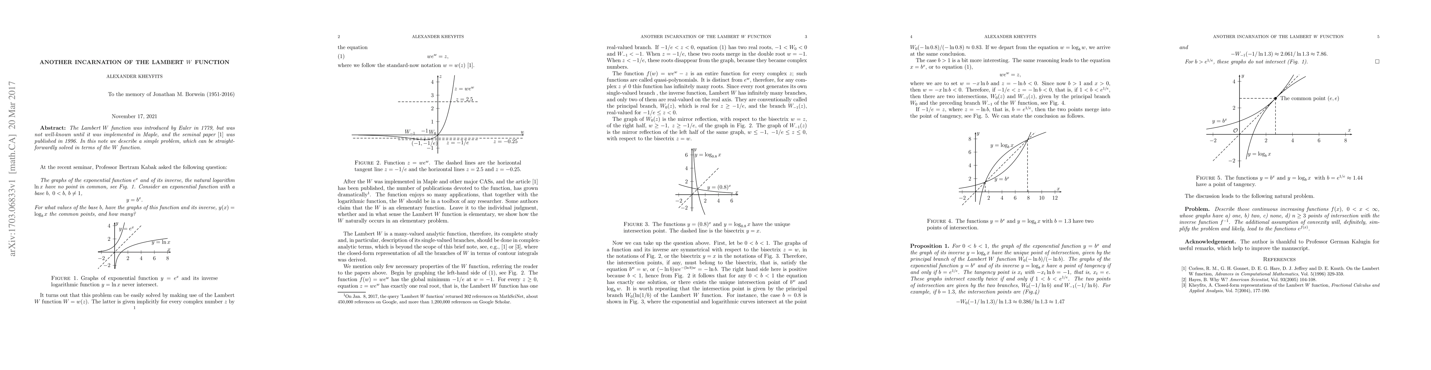 This paper introduces a straightforward problem that can be elegantly solved using the Lambert W function, highlighting its utility and reinforcing its relevance in modern mathematical applications. The discussion underscores the function's historical significance and contemporary importance.