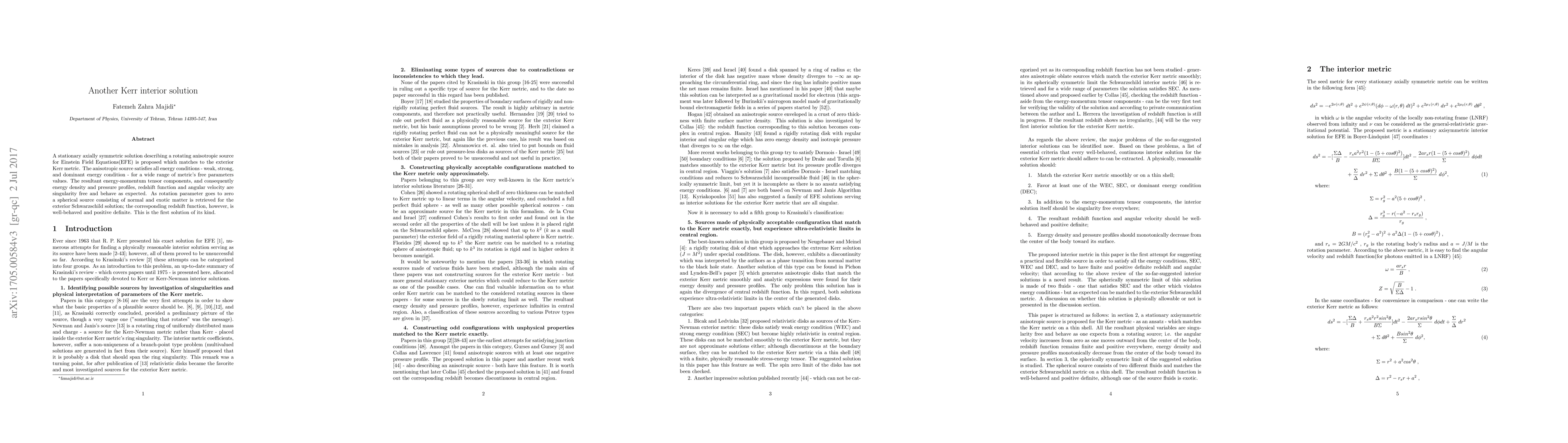 A new stationary axially symmetric solution matching the Kerr metric is proposed, which can describe a rotating anisotropic source with singularity-free energy density and pressure profiles.