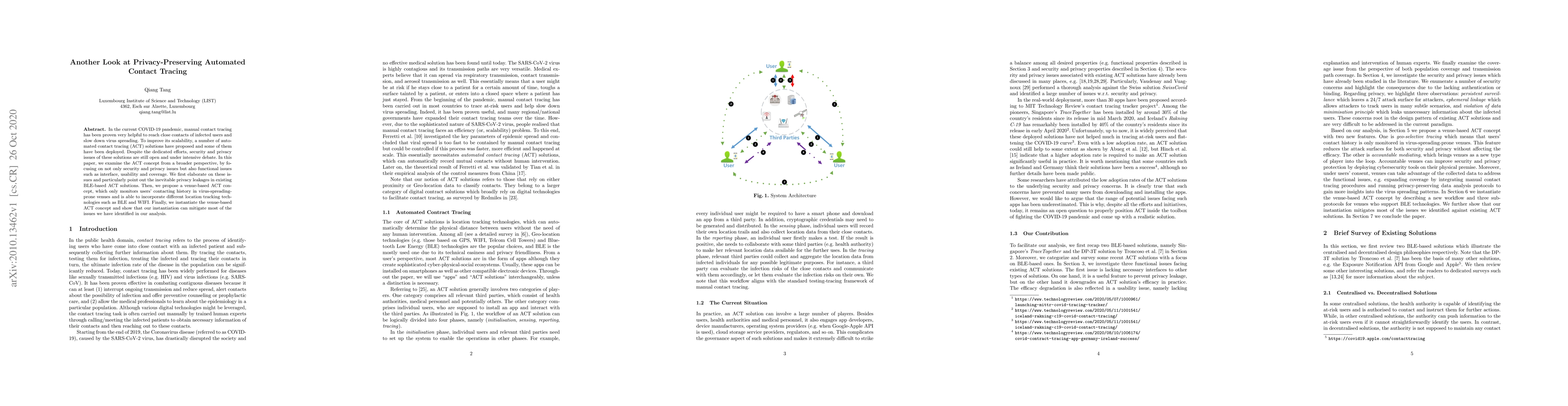 In the current COVID-19 pandemic, manual contact tracing has been proven very helpful to reach close contacts of infected users and slow down virus spreading. To improve its scalability, a number of automated contact tracing (ACT) solutions have proposed and some of them have been deployed. Despite the dedicated efforts, security and privacy issues of these solutions are still open and under intensive debate. In this paper, we examine the ACT concept from a broader perspective, by focusing on not only security and privacy issues but also functional issues such as interface, usability and coverage. We first elaborate on these issues and particularly point out the inevitable privacy leakages in existing BLE-based ACT solutions. Then, we propose a venue-based ACT concept, which only monitors users' contacting history in virus-spreading-prone venues and is able to incorporate different location tracking technologies such as BLE and WIFI. Finally, we instantiate the venue-based ACT concept and show that our instantiation can mitigate most of the issues we have identified in our analysis.