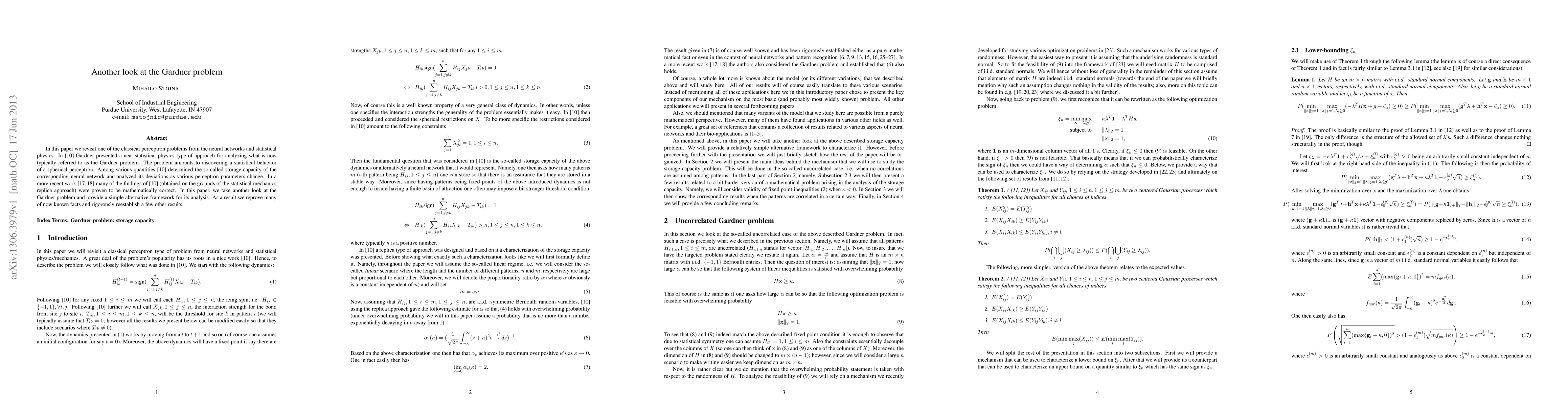 This paper revisits the Gardner problem, a classical issue in neural networks and statistical physics, offering a new framework for its analysis. It reproves known results and rigorously reestablishes some findings, providing a simpler alternative to previous statistical mechanics approaches.