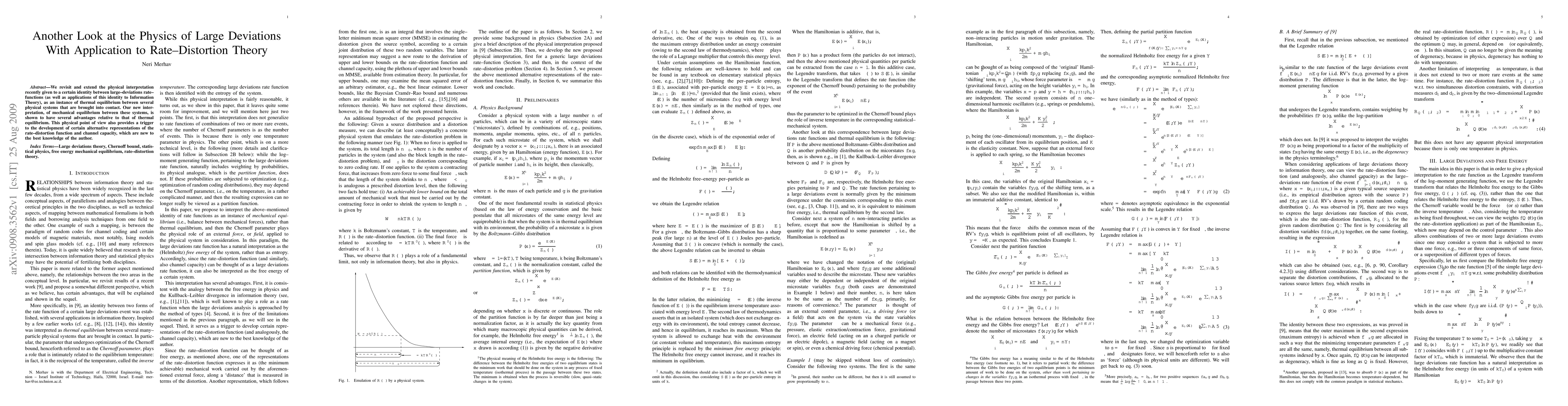 We revisit and extend the physical interpretation recently given to a certain identity between large--deviations rate--functions (as well as applications of this identity to Information Theory), as an instance of thermal equilibrium between several physical systems that are brought into contact. Our new interpretation, of mechanical equilibrium between these systems, is shown to have several advantages relative to that of thermal equilibrium. This physical point of view also provides a trigger to the development of certain alternative representations of the rate--distortion function and channel capacity, which are new to the best knowledge of the author.