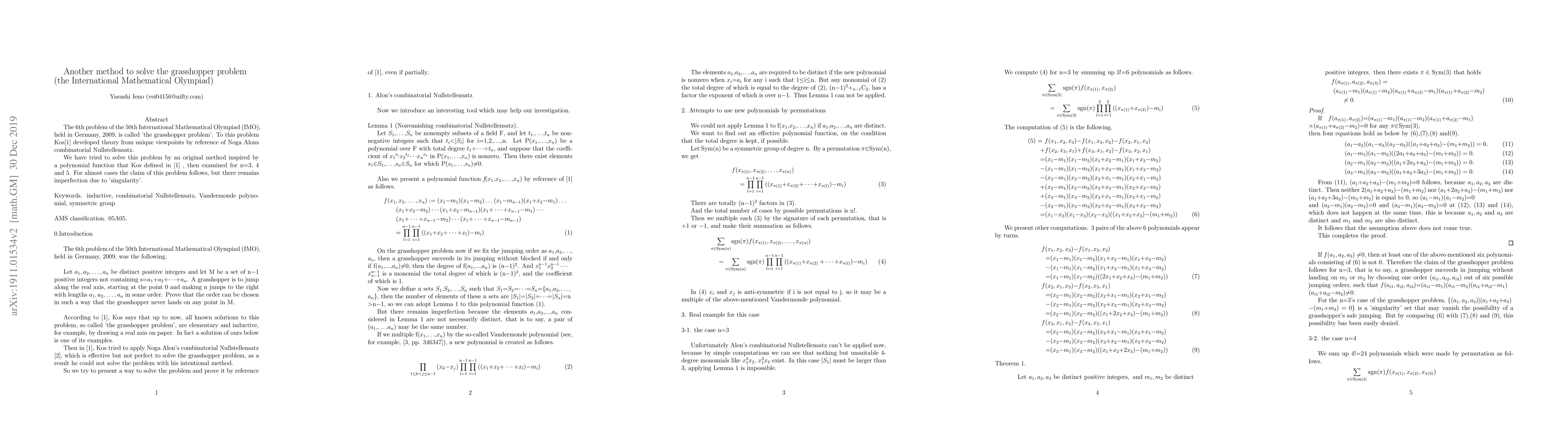 Researchers proposed a new method to solve the grasshopper problem, inspired by a polynomial function, and found that it holds for most cases but leaves imperfections due to singularity.