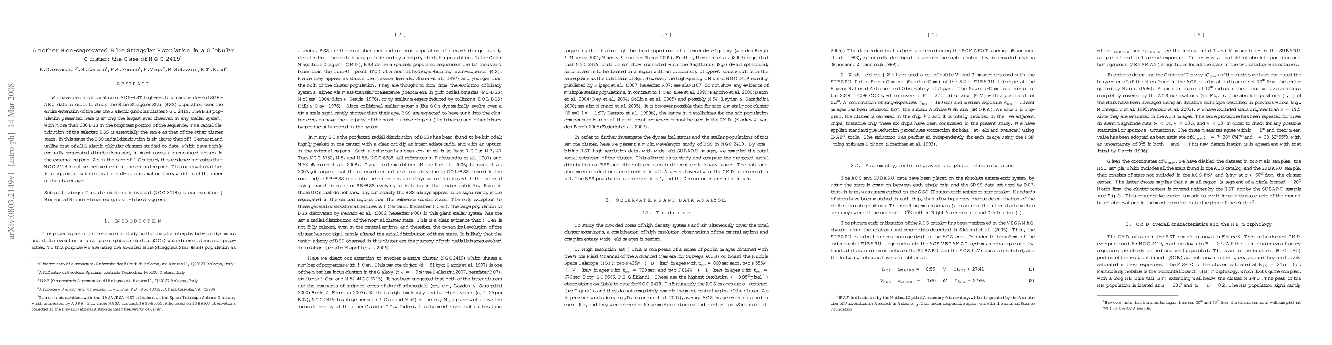 This study reveals that NGC 2419, a remote Galactic globular cluster, hosts a non-segregated Blue Straggler Star population, similar to omega Centauri, with over 230 Blue Stragglers distributed radially like other cluster stars, suggesting the cluster has not yet relaxed. The non-segregated radial distribution of Blue Stragglers indicates that NGC 2419's relaxation time aligns closely with its age, unlike other globular clusters that typically show central segregation.