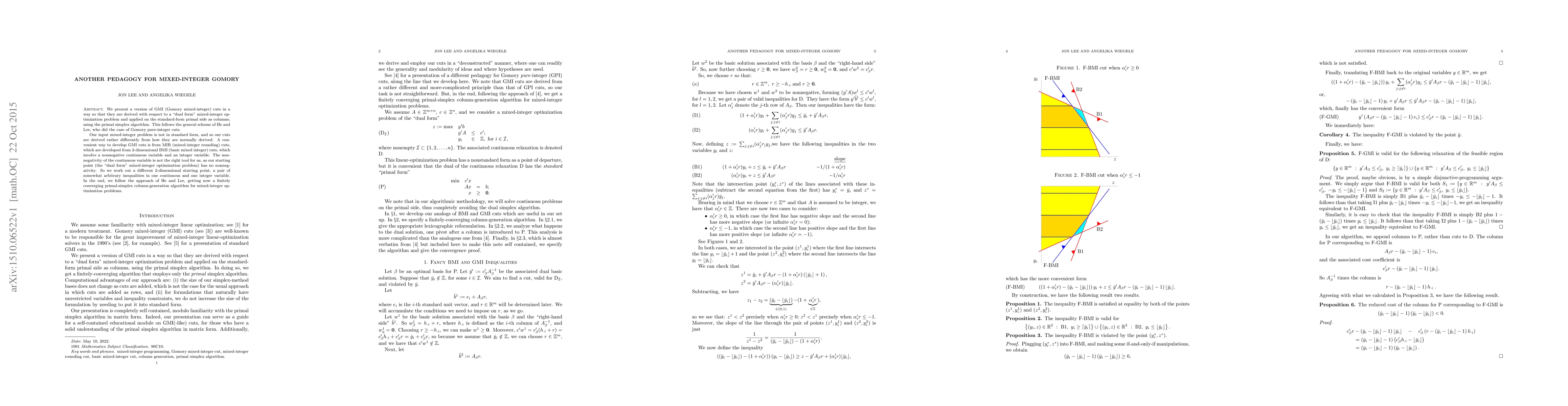 This paper presents a novel derivation of GMI cuts for mixed-integer optimization problems based on a "dual form" rather than standard form, diverging from traditional methods. It utilizes a different 2-dimensional starting point and follows He and Lee's approach to achieve a finitely converging primal-simplex column-generation algorithm.