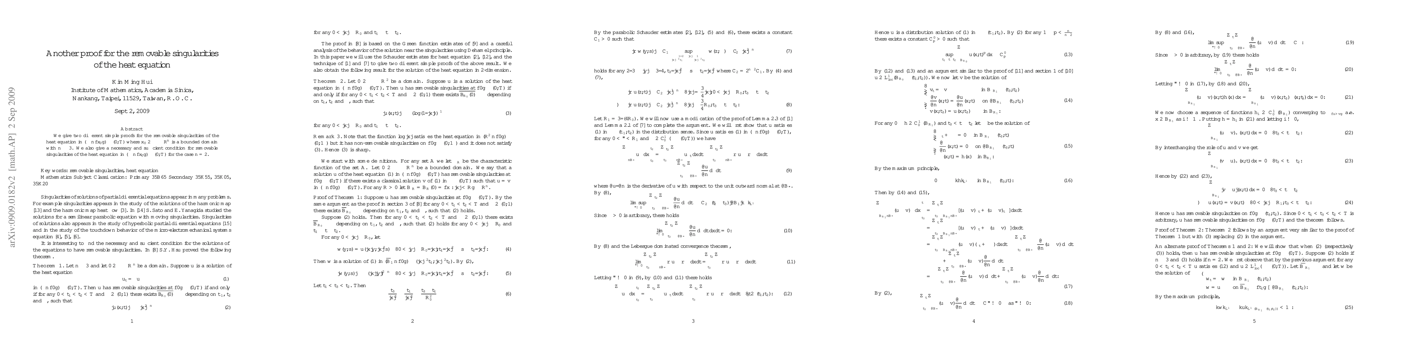 This paper presents two straightforward proofs for the removable singularities of the heat equation in $\Omega\setminus\{x_0\}$ for $n \geq 3$ and provides a necessary and sufficient condition for $n=2$. The focus is on clarifying the behavior of the heat equation near singularities.