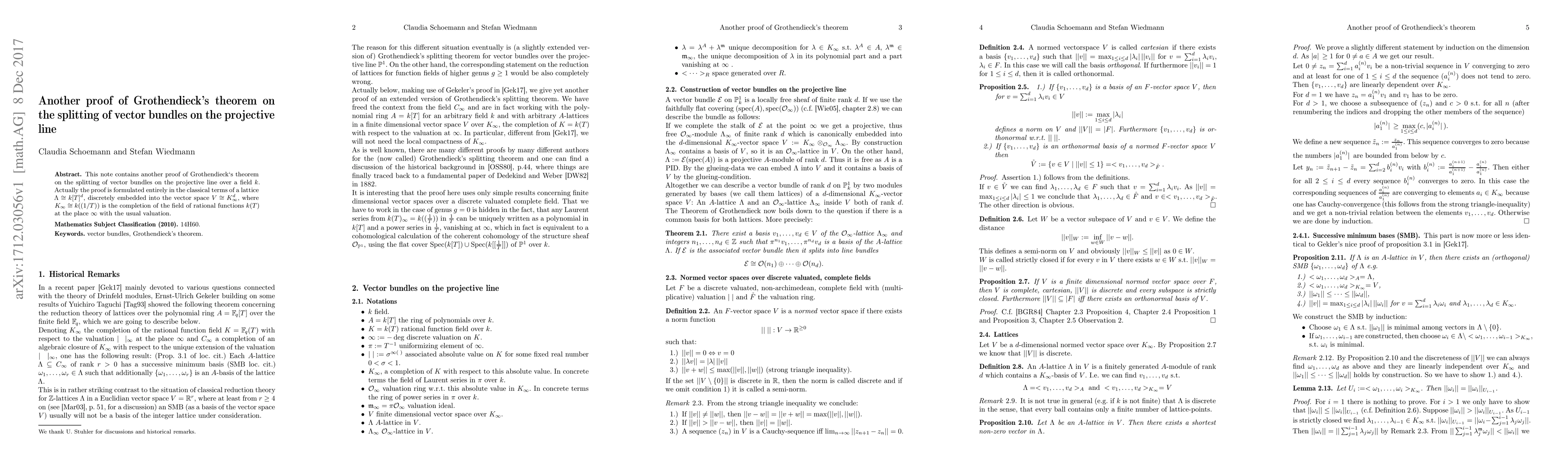 This paper proves Grothendieck's theorem on vector bundle splitting on the projective line using classical lattice theory, focusing on a new formulation in terms of rational functions.