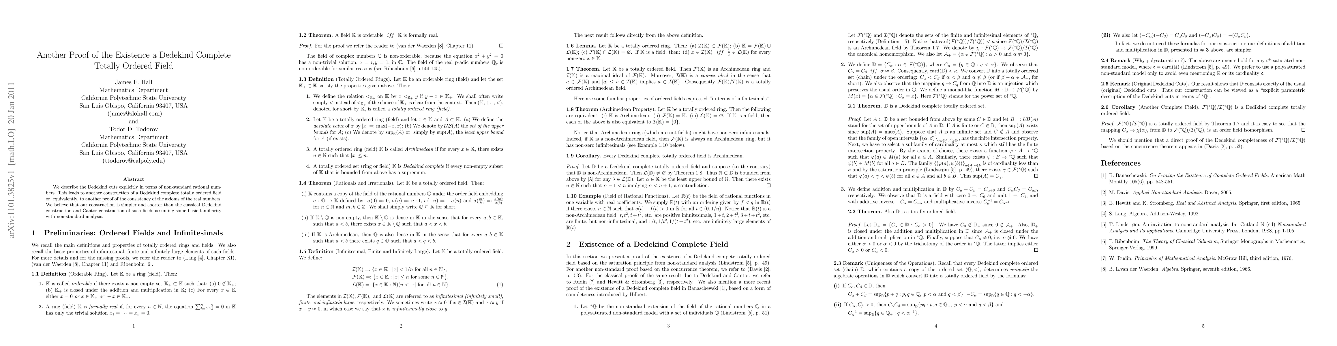 This paper presents an alternative proof of the existence of a Dedekind complete totally ordered field using non-standard rational numbers, offering a simpler and shorter construction compared to classical methods. It leverages basic non-standard analysis to achieve this.