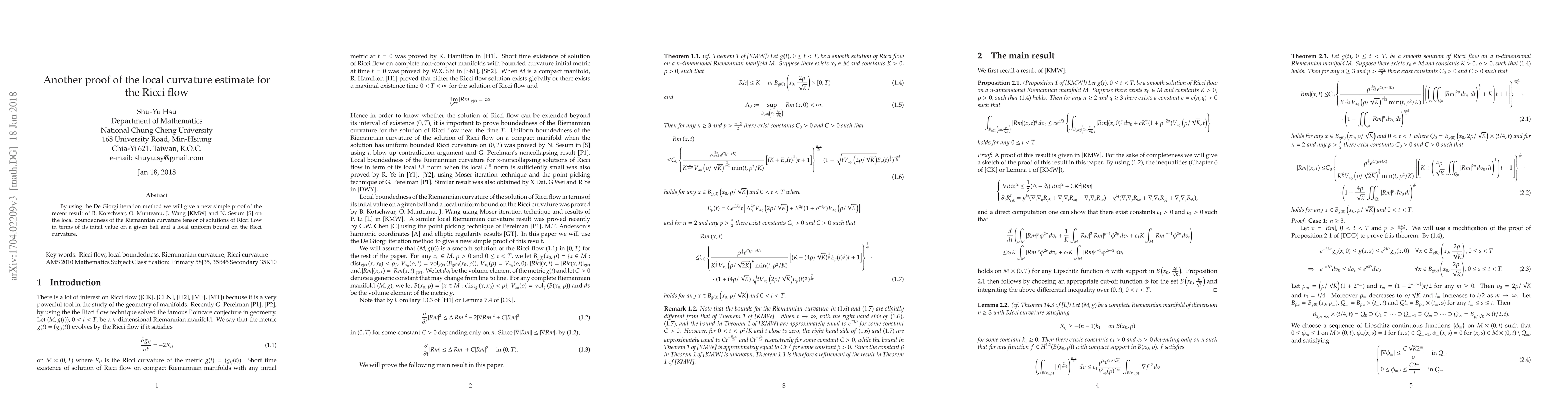 Researchers prove the local curvature estimate for Ricci flow using De Giorgi iteration method, confirming the boundedness of the Riemannian curvature tensor based on initial conditions and uniform bounds.